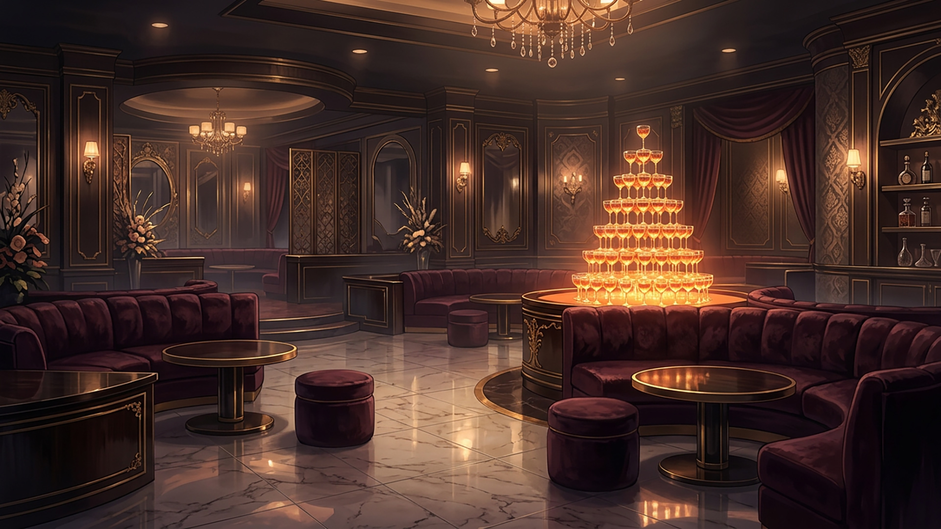 検索キーワード:高級, ホストクラブ, 煌びやか, シャンパンタワー, 豪華, 夜の街, High-end, Host club, Glittering, Champagne tower, Luxurious, Nightlife