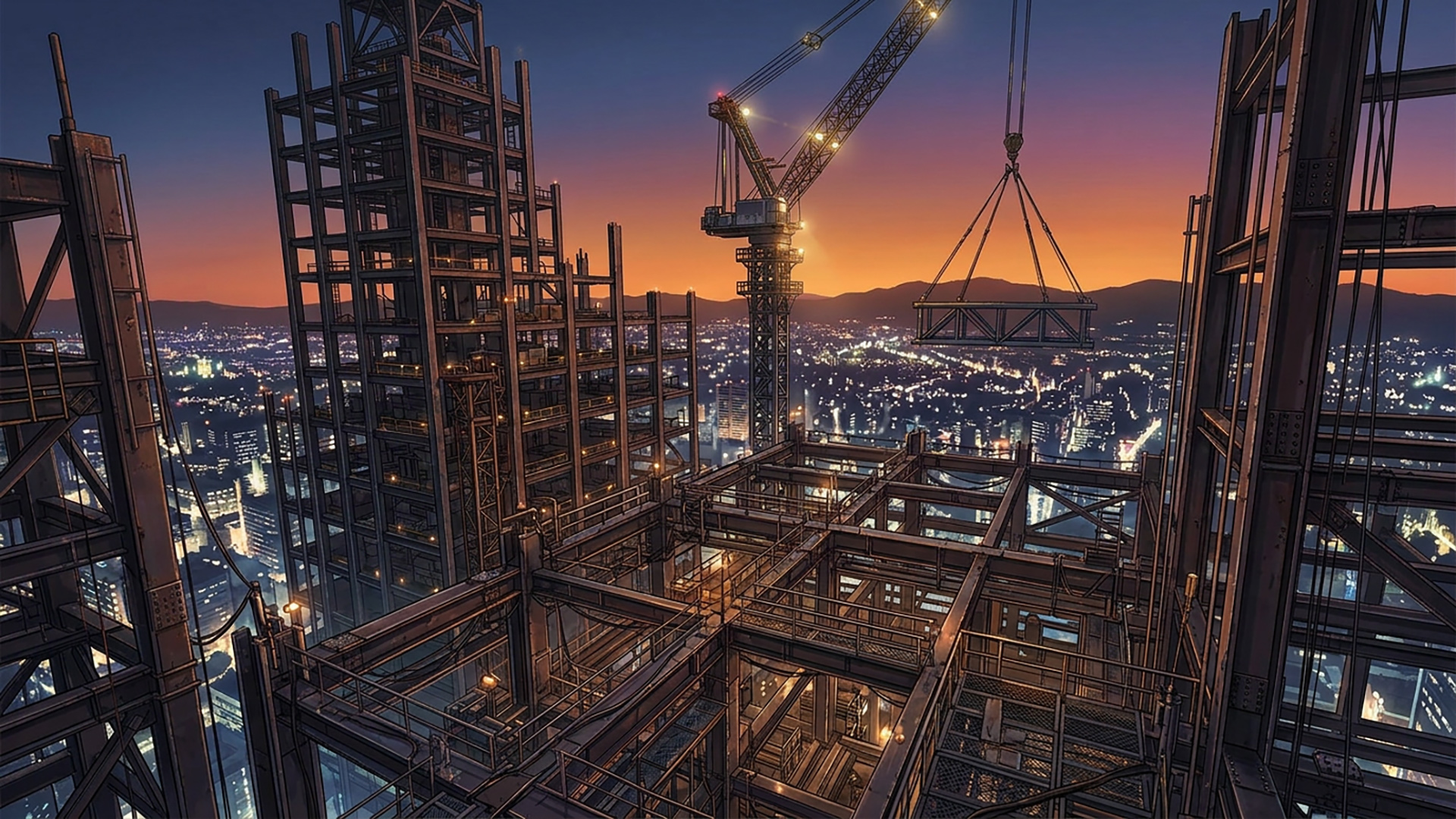検索キーワード:高層ビル, 建設現場, クレーン, 鉄骨, 足場, 差分, High-rise building, Construction site, Crane, Steel frame, Scaffolding, Variation