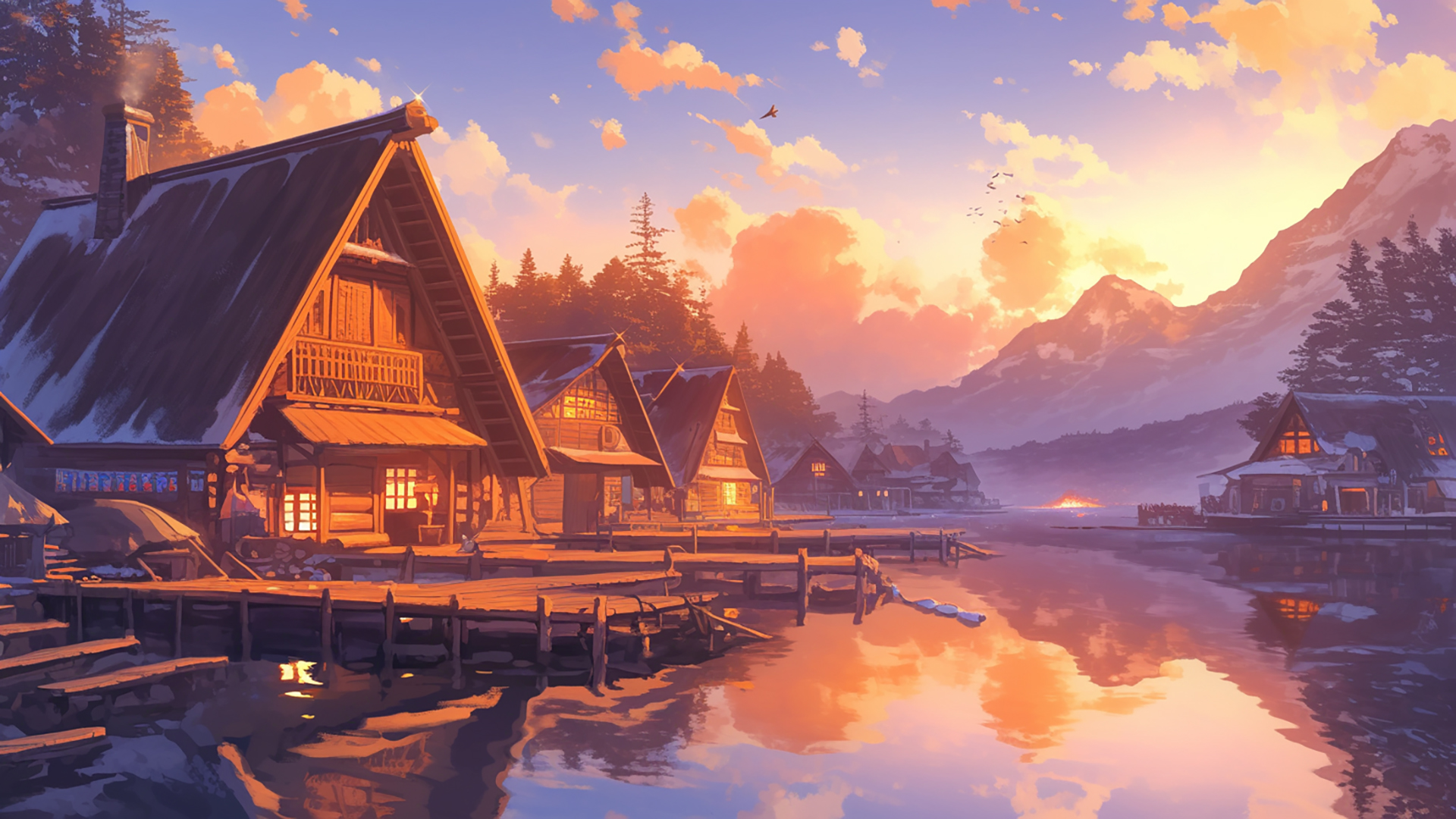 検索キーワード:湖畔, 村, 水面, 家, 自然, 風景, lakeside, village, water, houses, nature, scenery