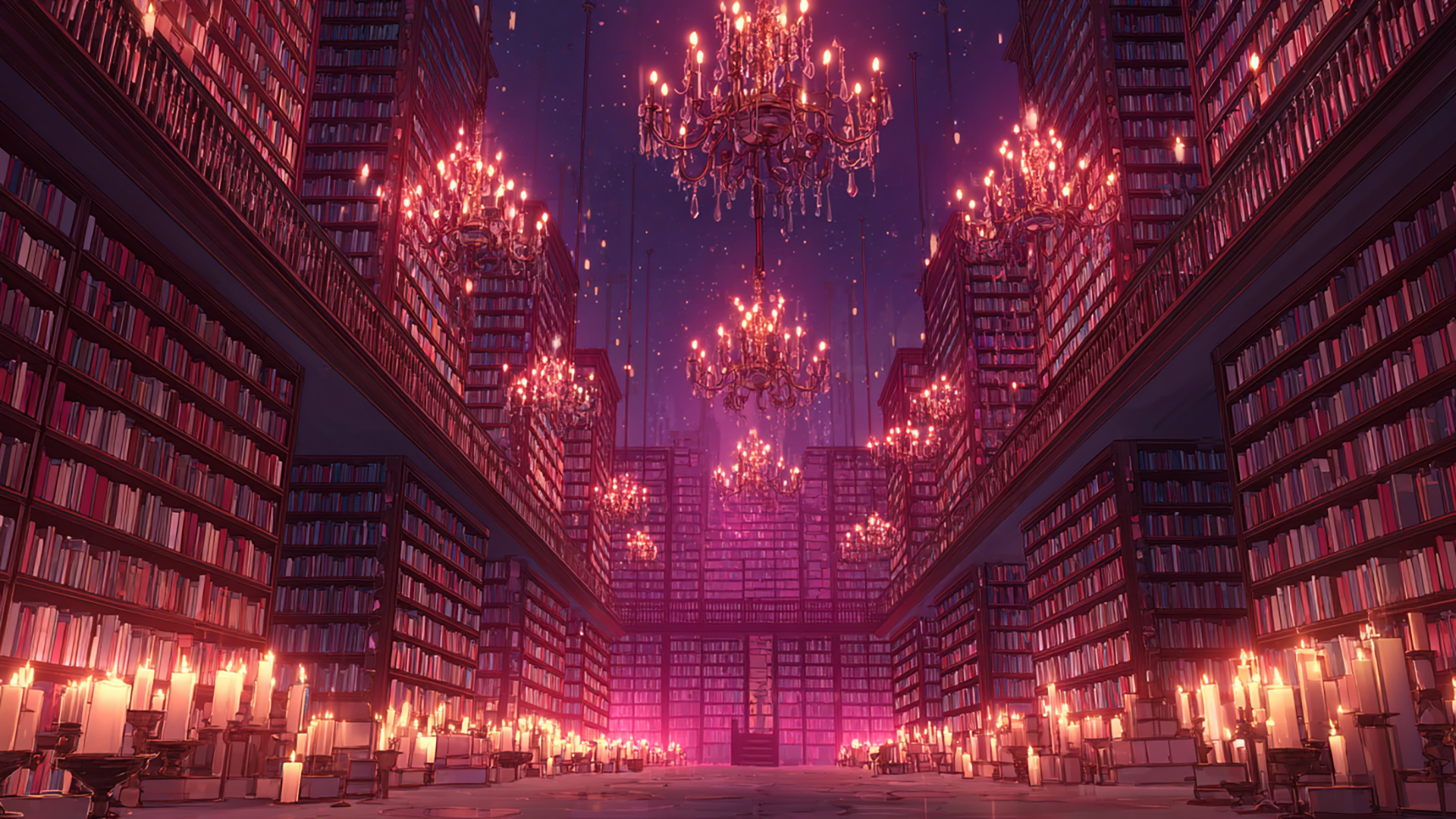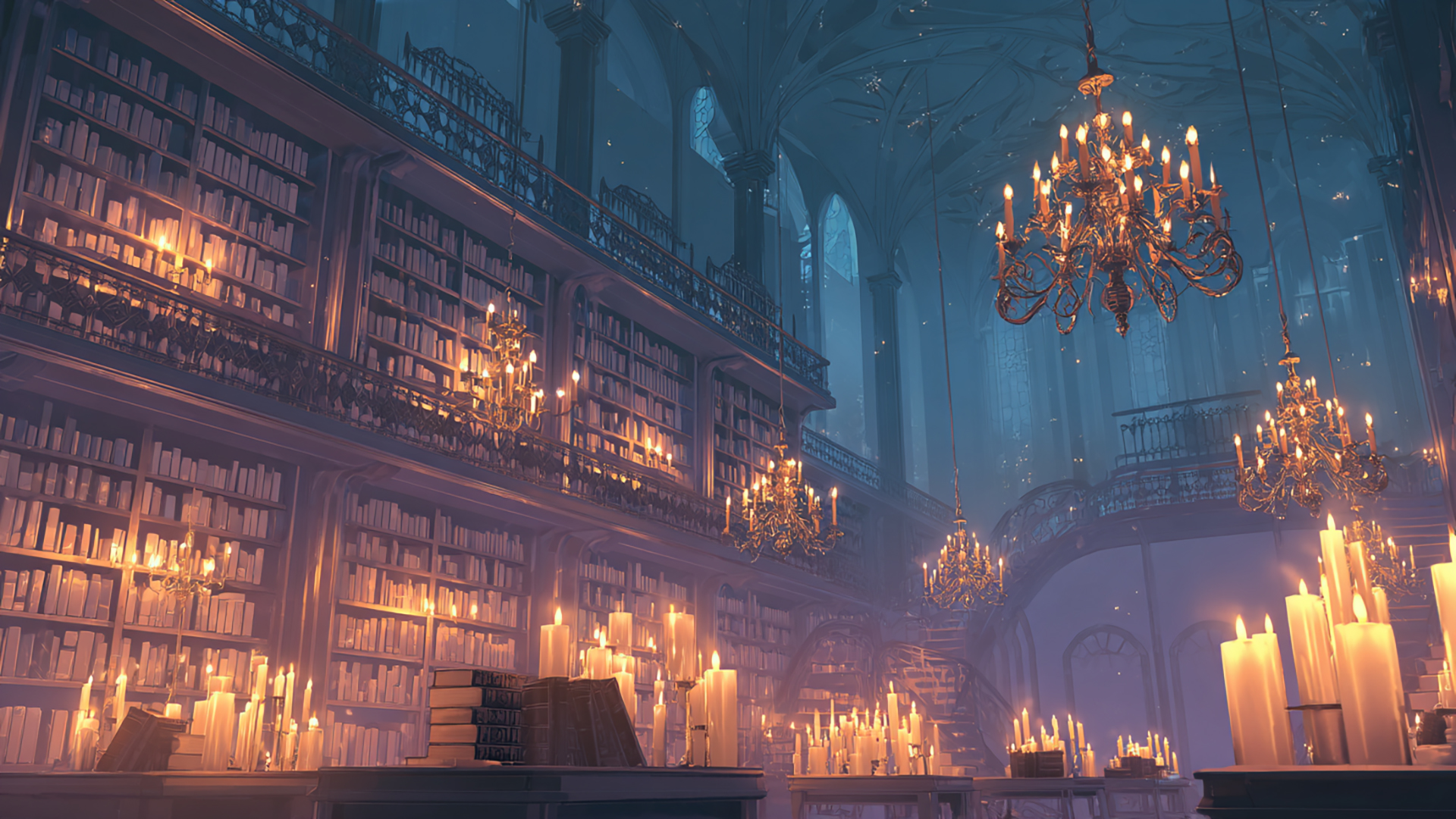 検索キーワード:魔導図書館, 燭台, 異世界, 魔法, 幻想的, 室内, magic library, candlestick, otherworld, fantasy, enchanted, mystical interior