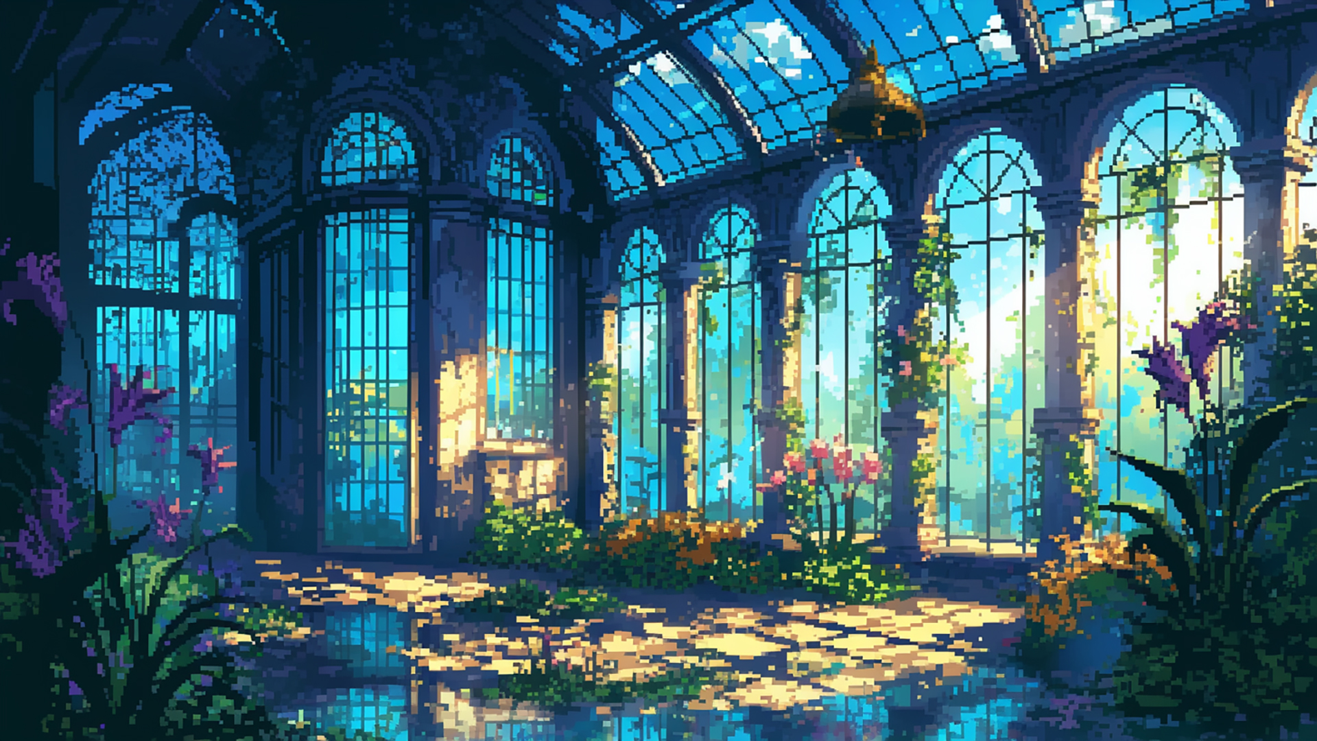 検索キーワード:お屋敷, 温室, 植物, 光, ファンタジー, ドット絵, mansion, greenhouse, plants, light, fantasy, pixel art