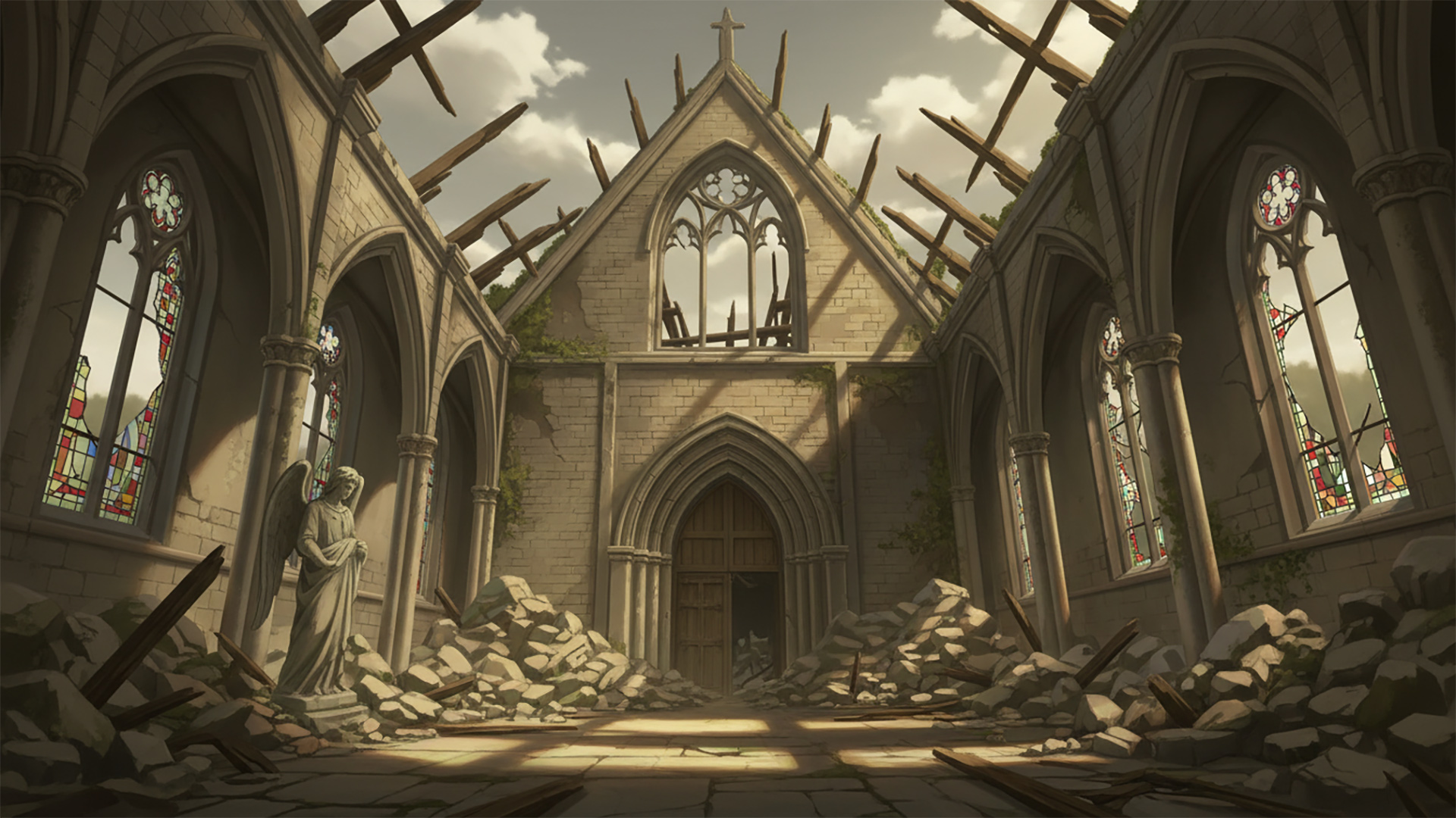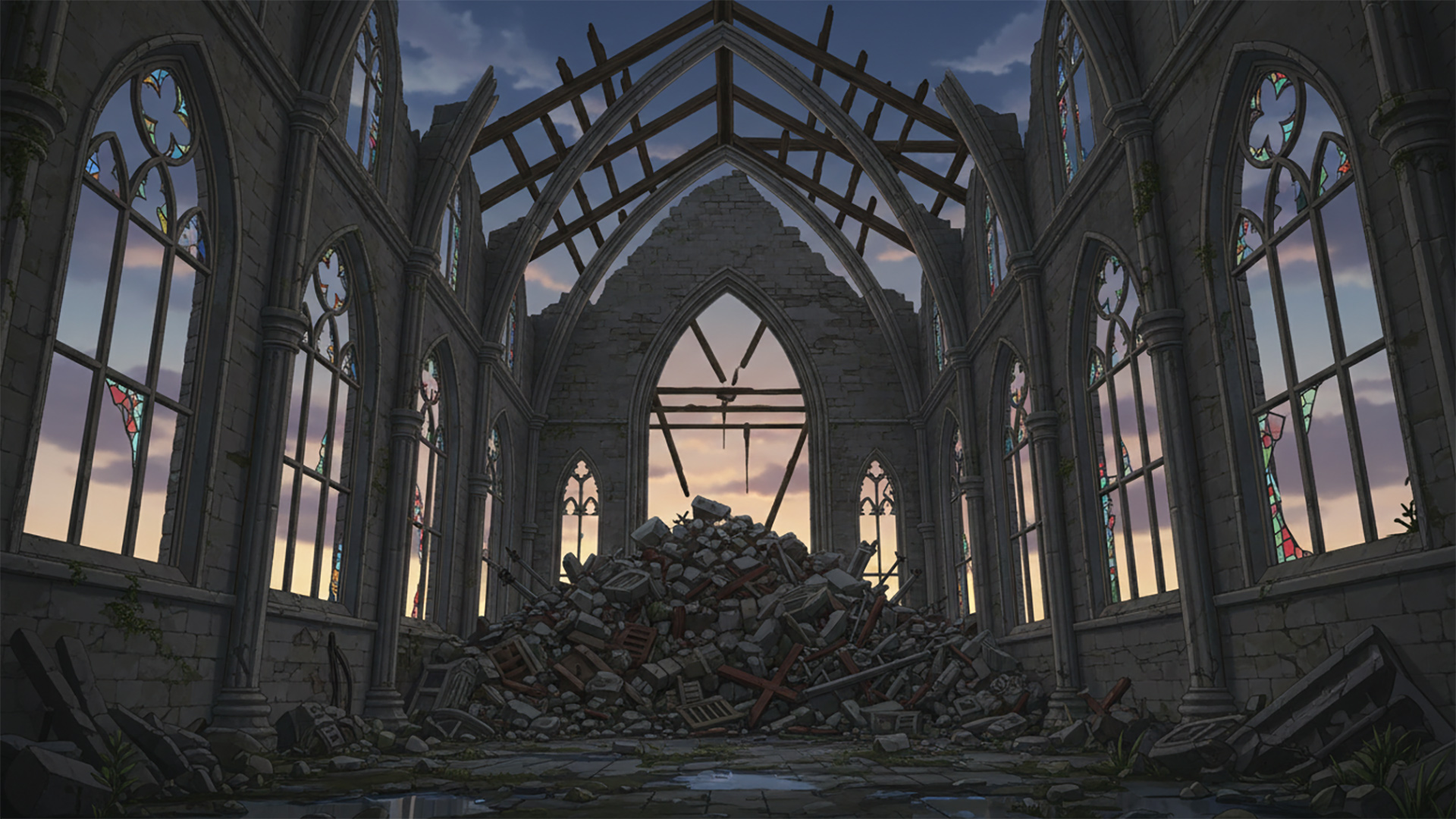 検索キーワード:中世, 教会, 破壊, 瓦礫, 荒廃, 戦跡, Medieval, Church, Ruins, Destroyed, Rubble, War-torn