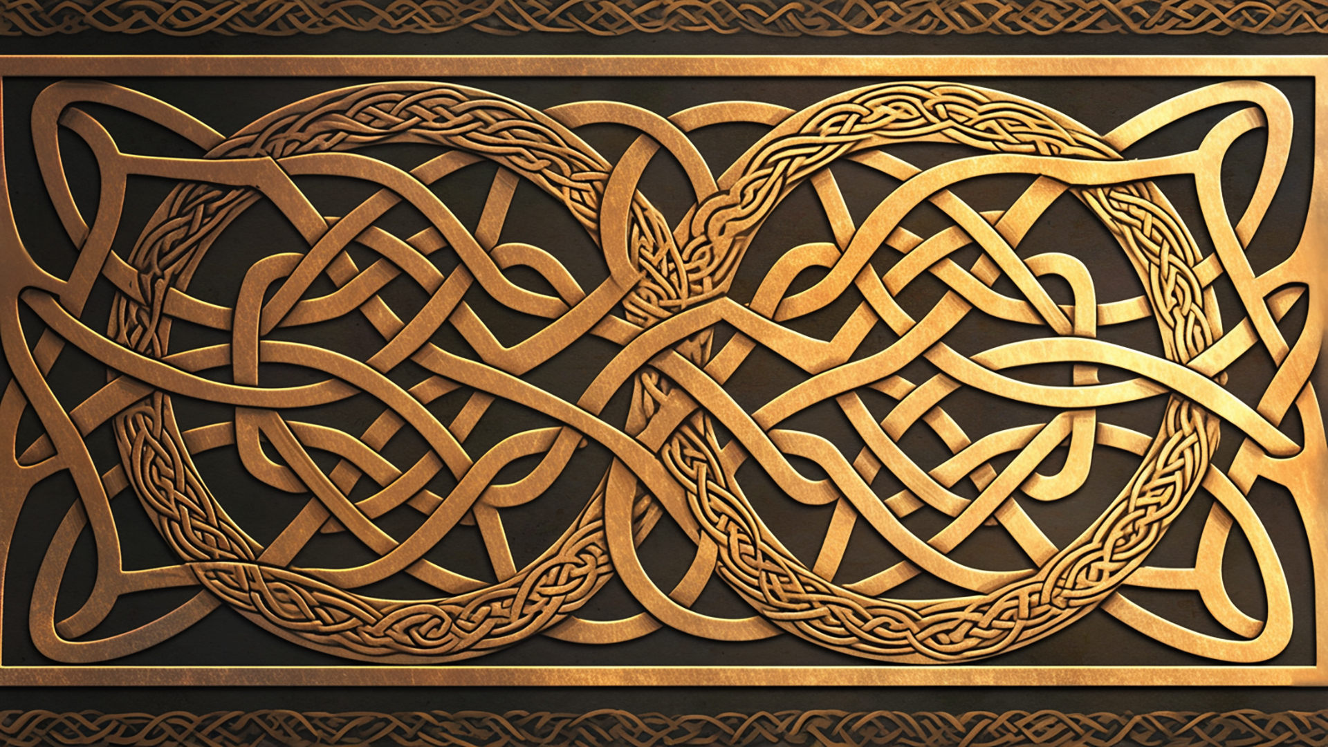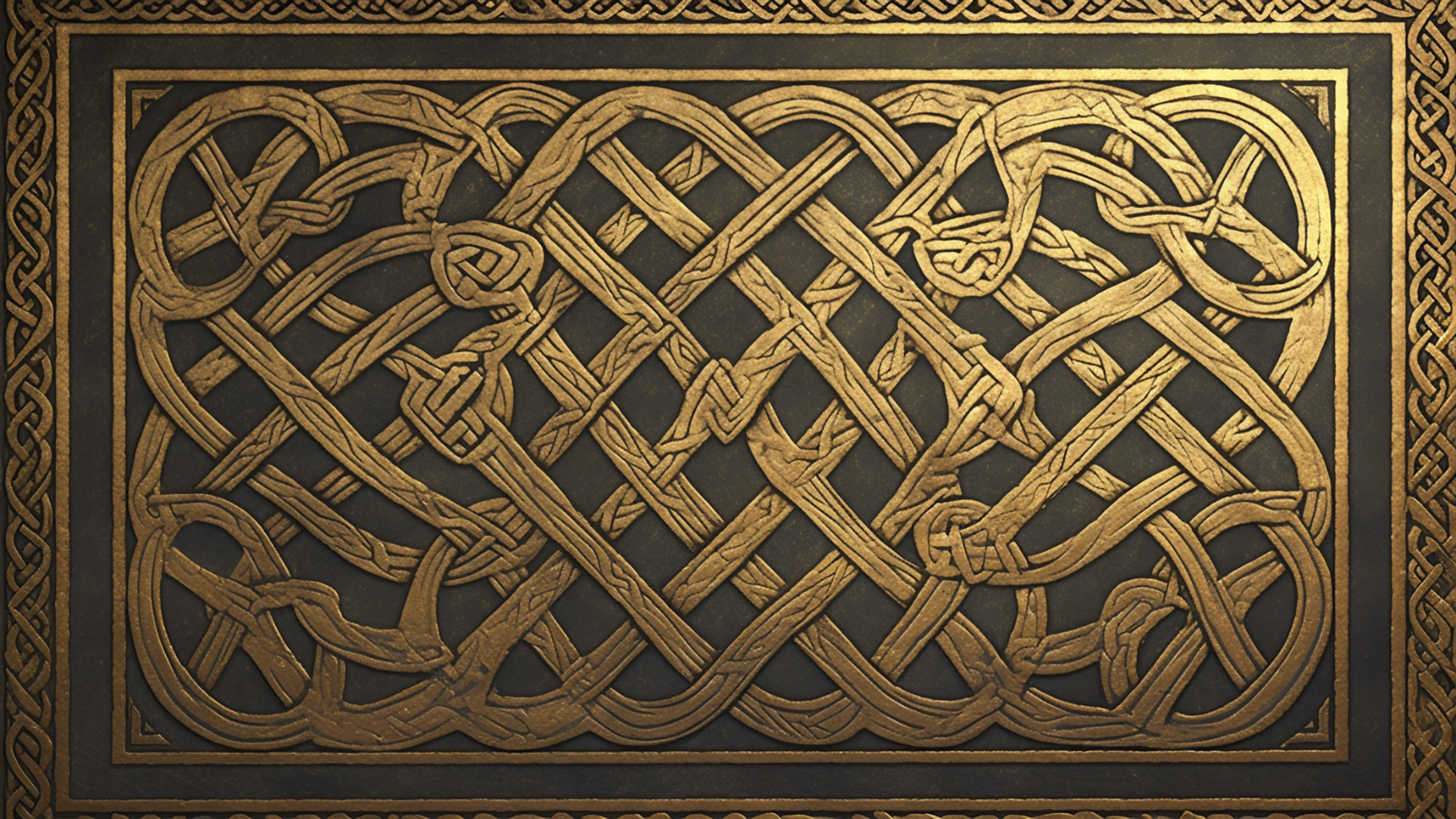 ケルトの金属装飾パネル|ブロンズと彫刻の重厚背景(3枚)
