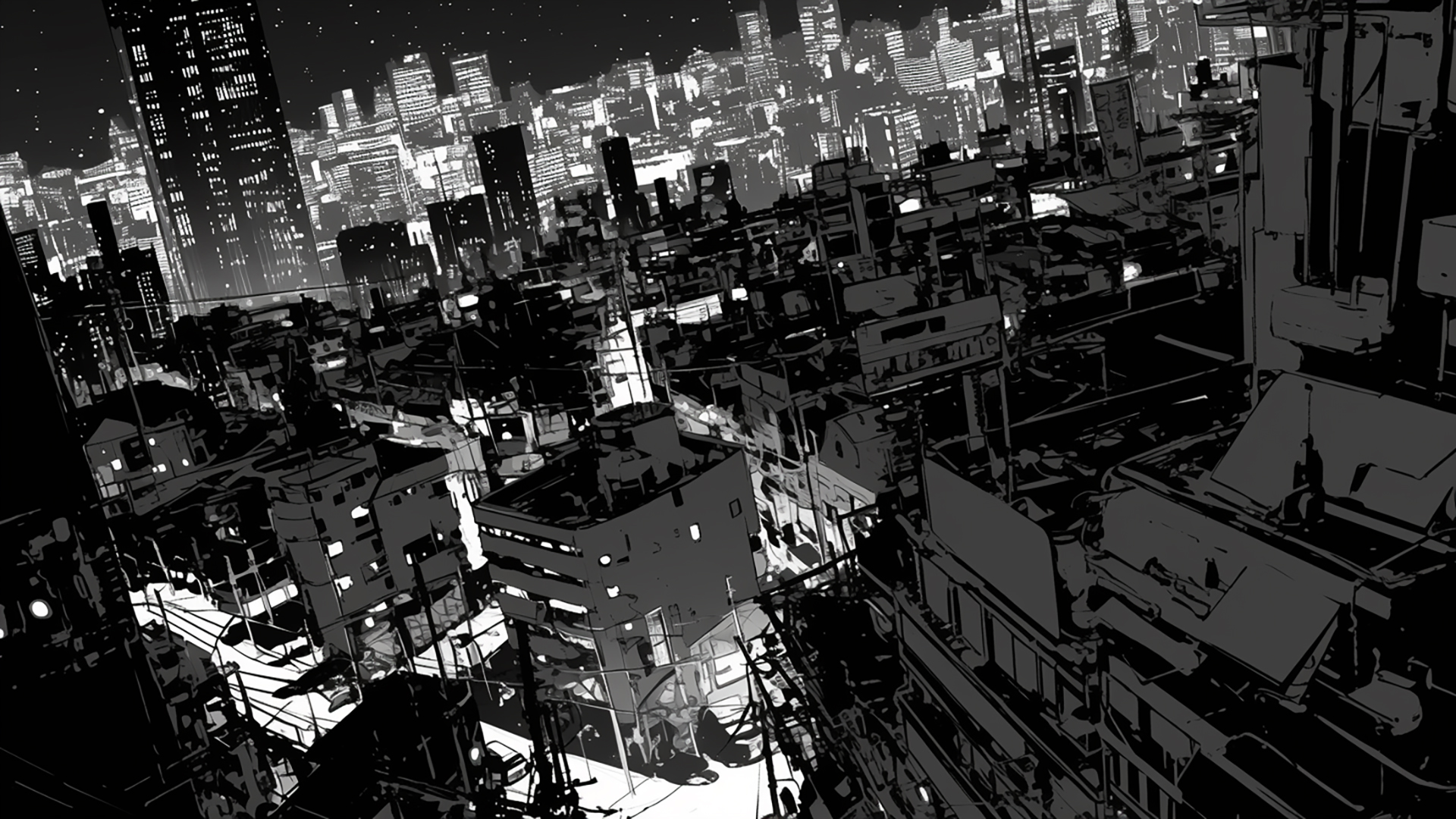 検索キーワード:マンガ, 都市夜景, 建築, 背景, モノクロ, トーン, manga, citynight, buildings, background, monochrome, tone