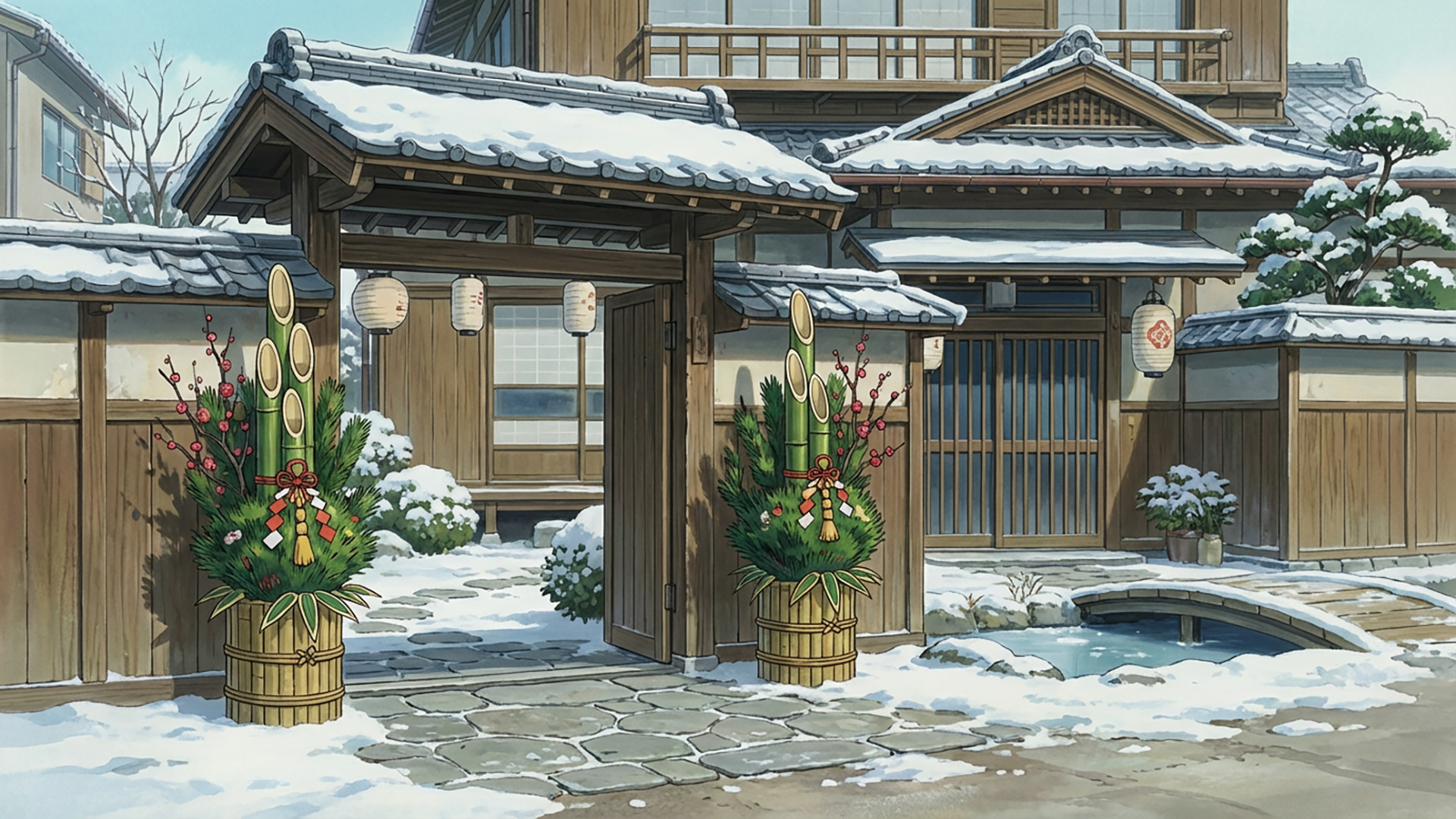検索キーワード:門松,日本家屋,正月,和風,新年,冬, kadomatsu, Japanese house, New Year, traditional, celebration, winter
