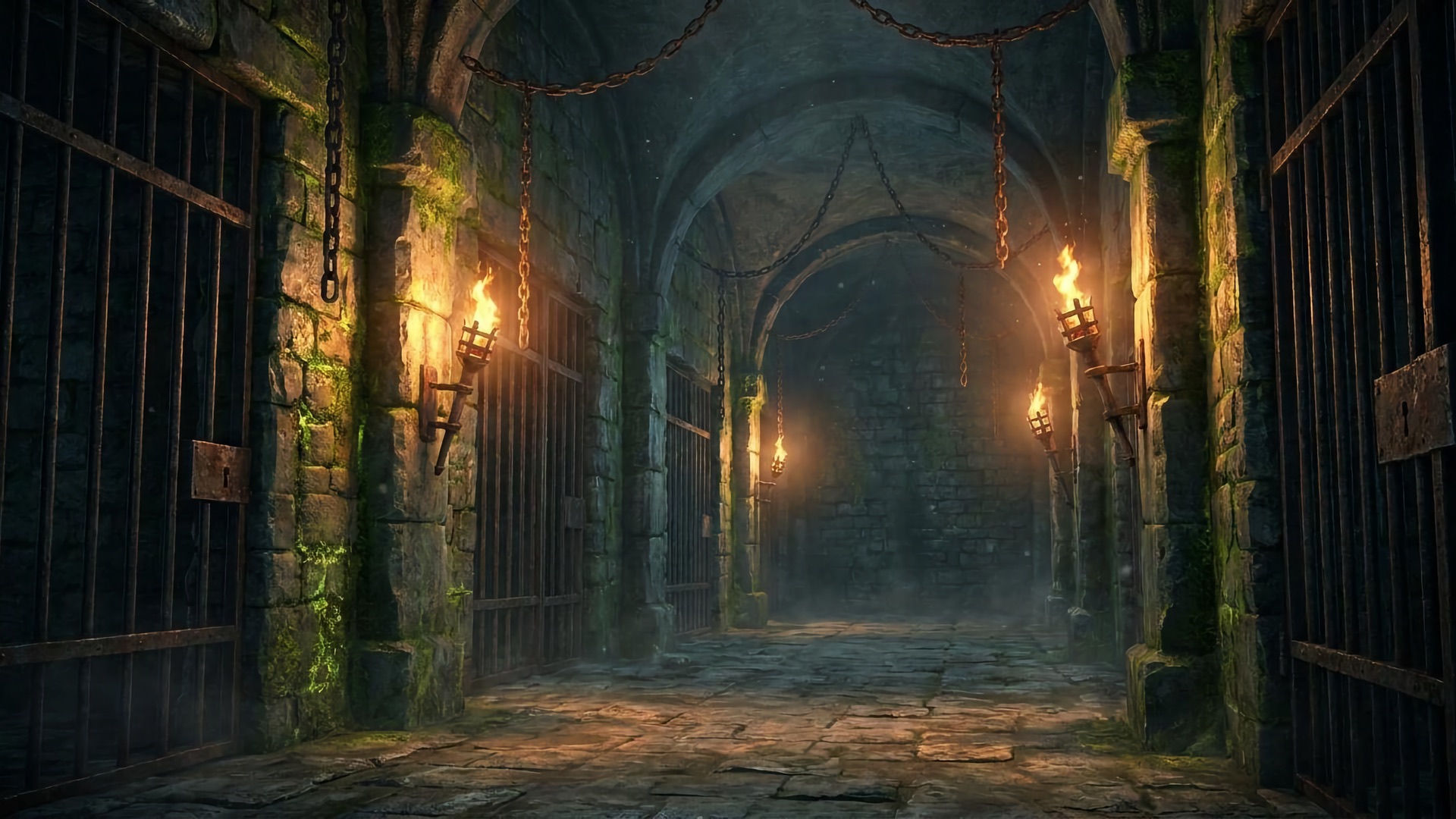検索キーワード:地下牢, 牢獄, 監獄, 廃墟, ダークファンタジー, 城, 暗闇, 歴史, 秘密, 不気味, dungeon, prison, jail, ruins, dark fantasy, castle, underground, atmosphere, creepy, medieval