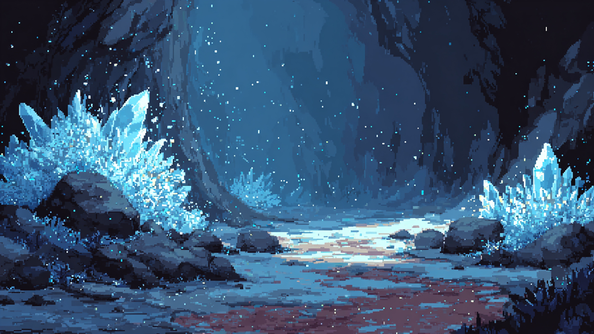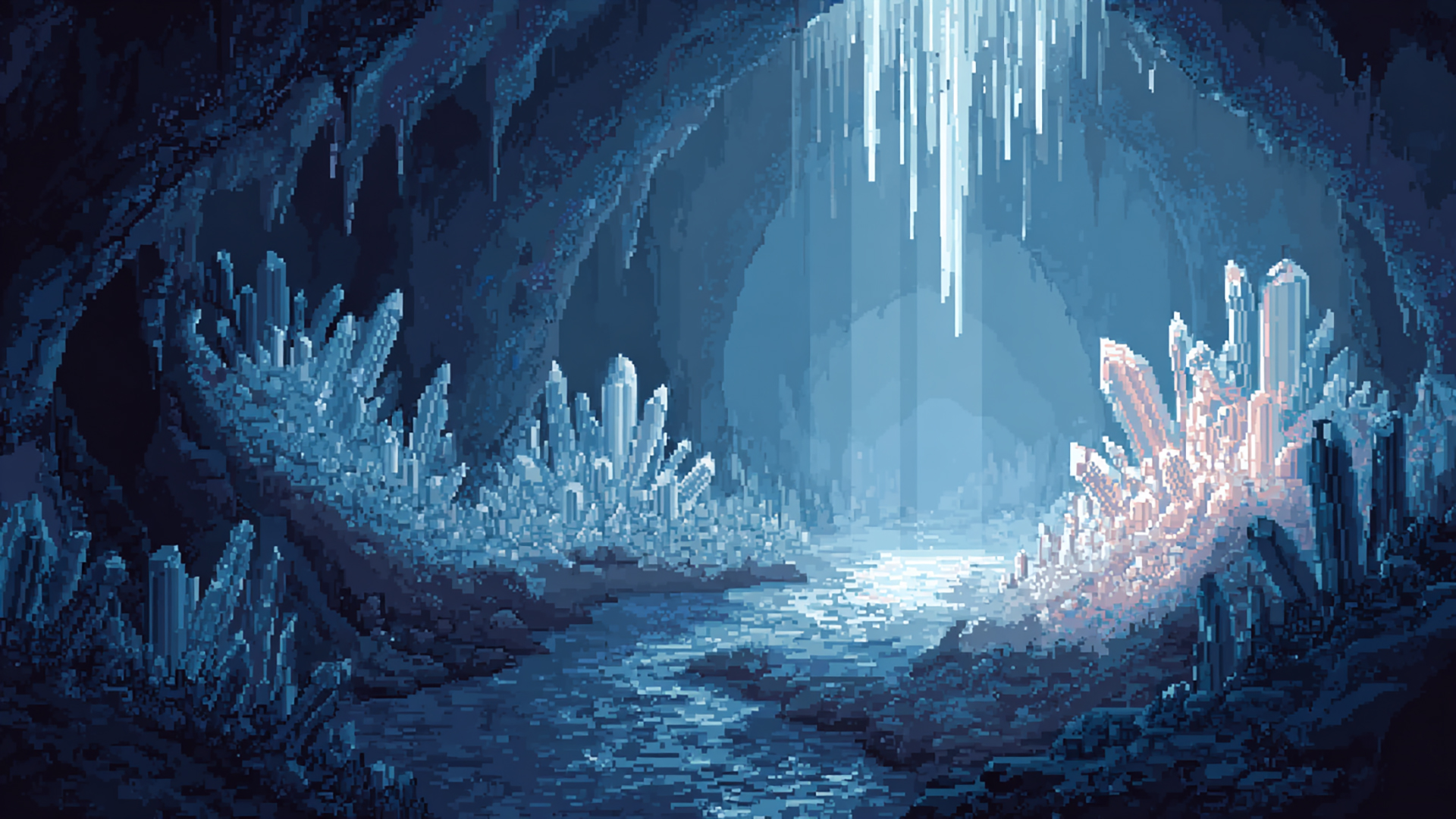 検索キーワード:ドット絵, 氷の洞窟, 冬, 氷柱, 青, 風景, dotpixel, icecave, winter, icicle, blue, landscape
