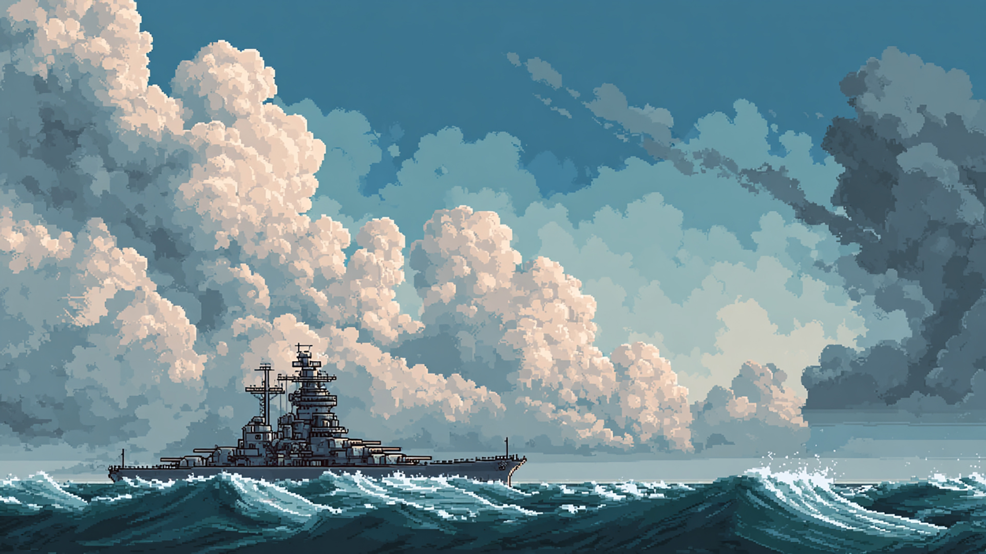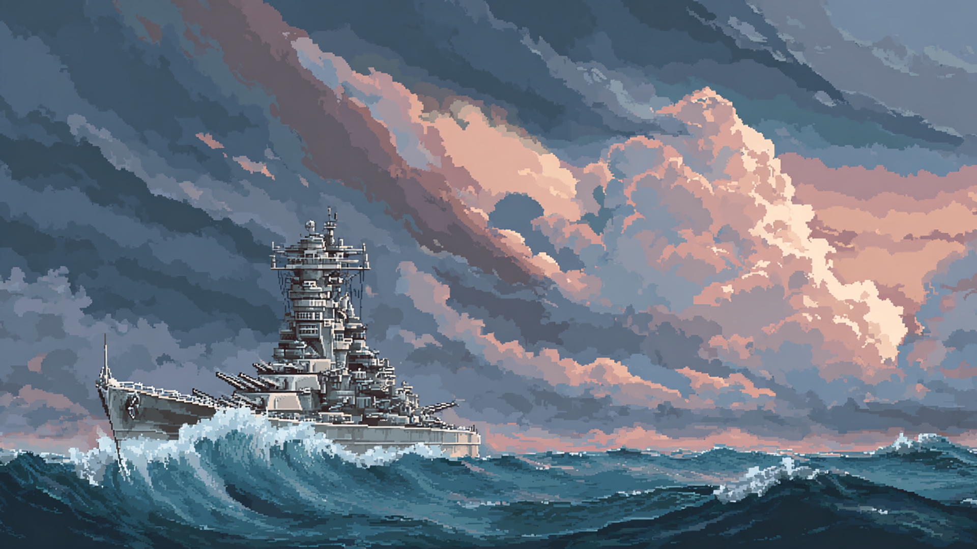 検索キーワード:ドット絵, 戦艦, 海, 甲板, 金属, 迫力, dotpixel, battleship, sea, deck, metal, power