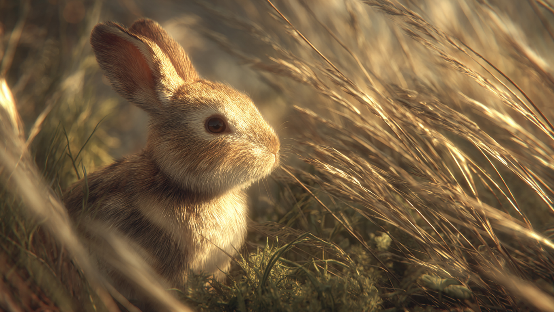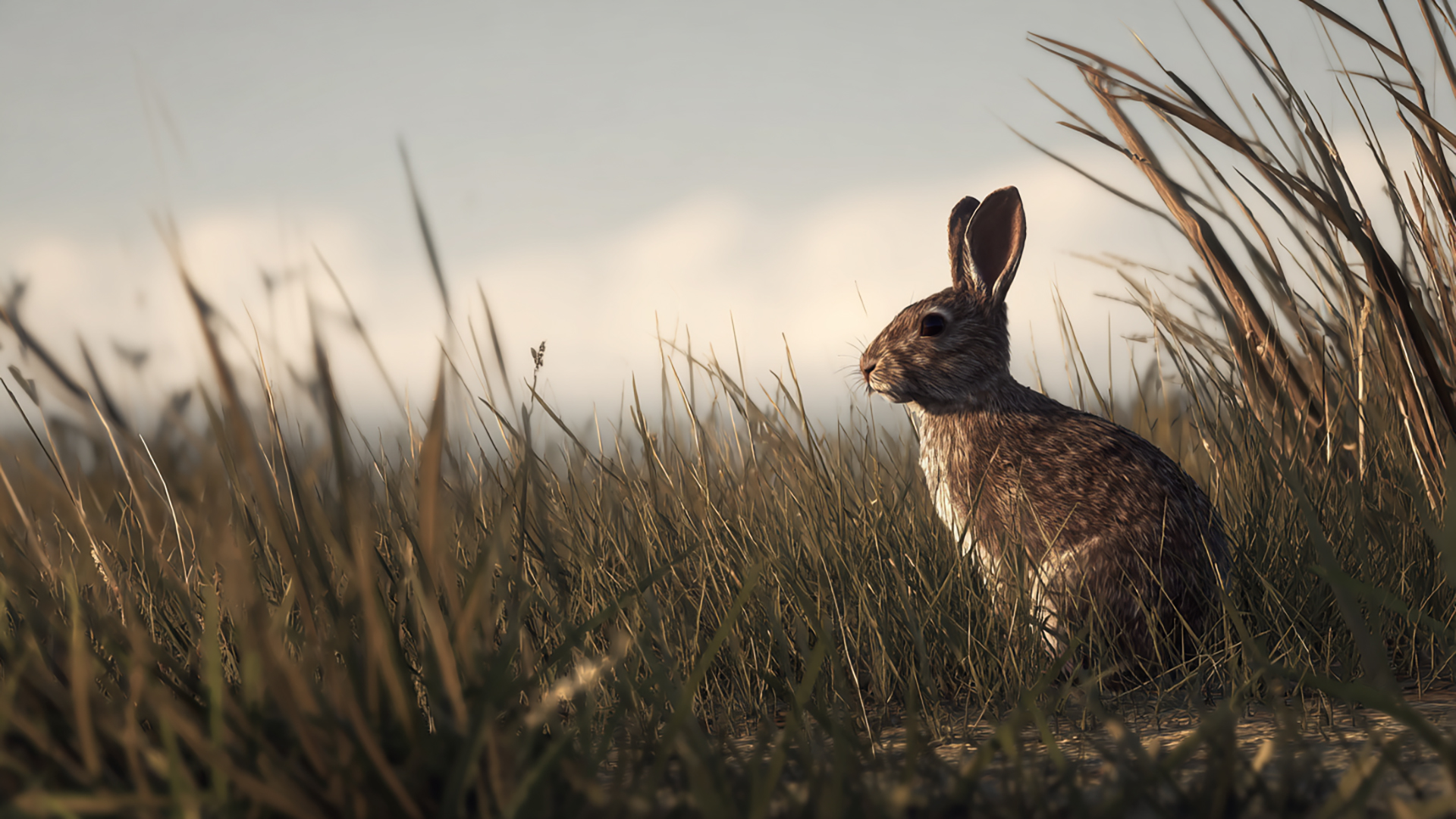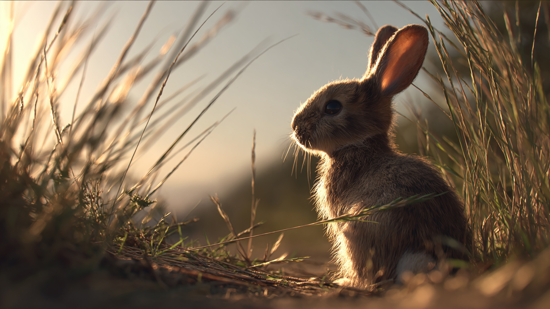 検索キーワード:草原, うさぎ, 写実風, 自然, 光, 野生, meadow, rabbit, realistic, nature, light, wildlife