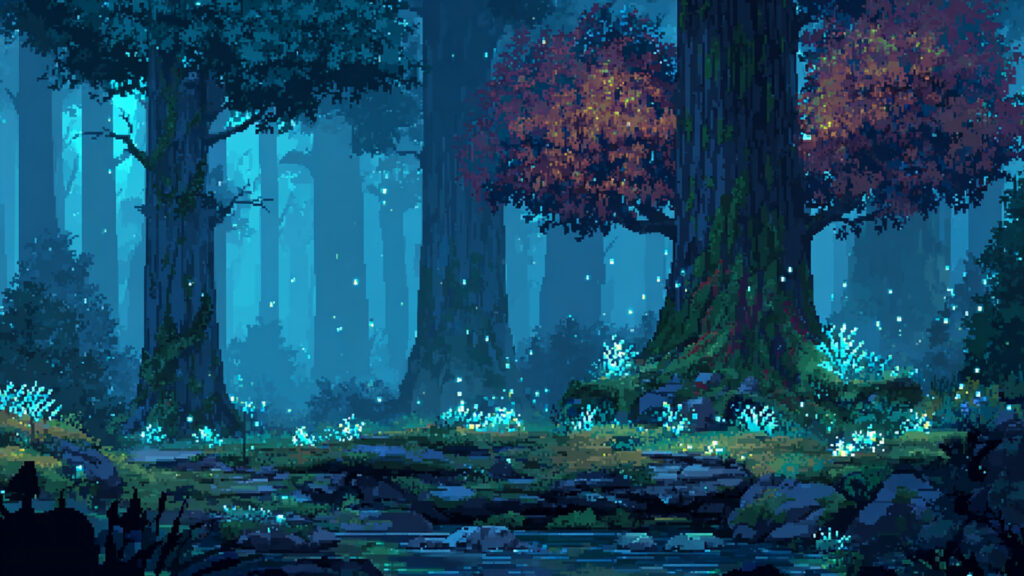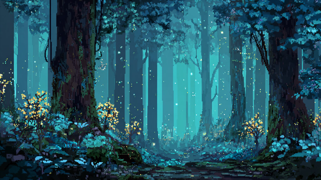 検索キーワード:光, 魔法, 森, ファンタジー, ドット絵, 神秘, light, magic, forest, fantasy, pixel art, mystical