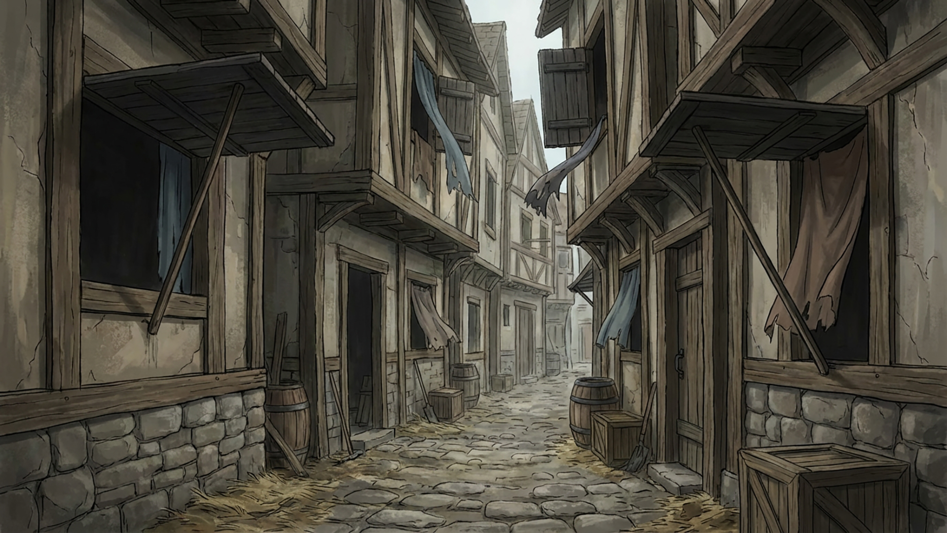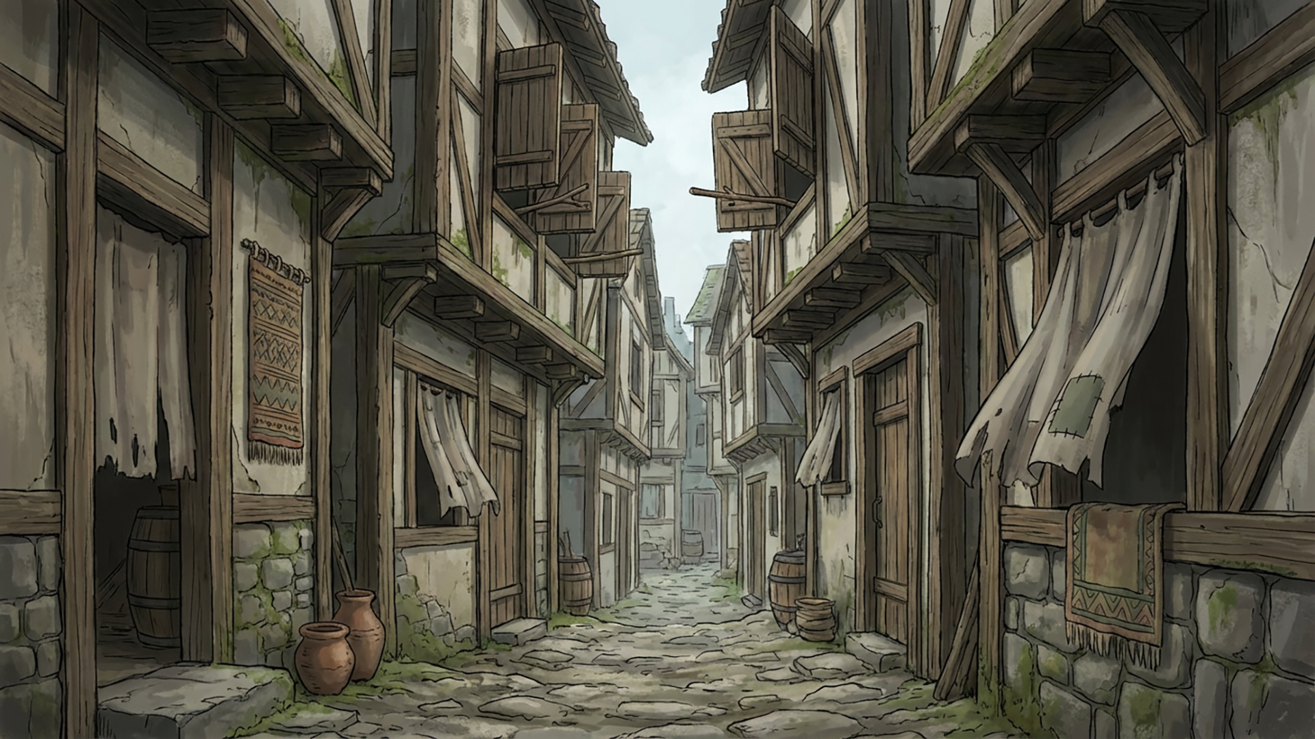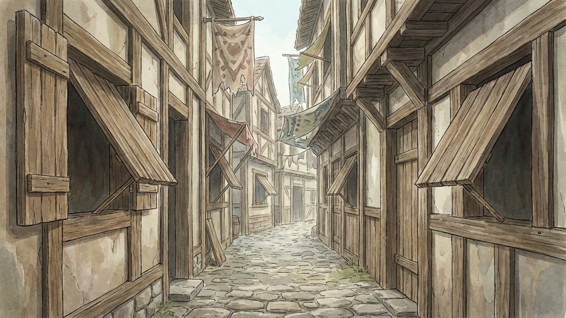 検索キーワード:中世,裏路地,素朴,石畳,古い街並み,静寂, medieval, back alley, rustic, cobblestone, old town, quiet