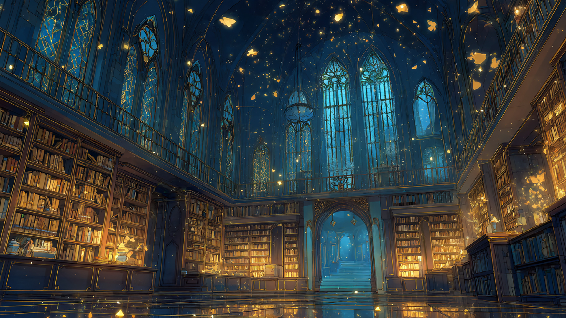 検索キーワード:星空, 月光, 魔法, 図書館, ファンタジー, 神秘, starry sky, moonlight, magic, library, fantasy, mystical