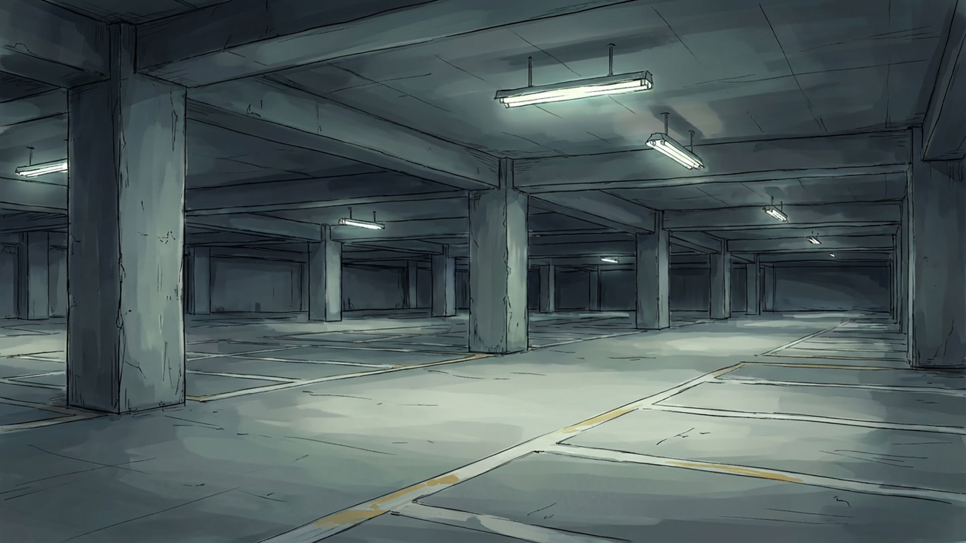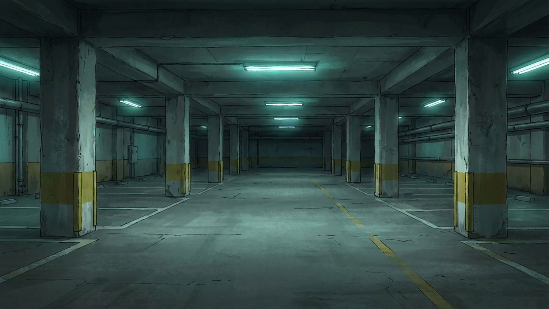 検索キーワード:地下駐車場, 怪しい, 薄暗い, 不気味, コンクリート, アンダーグラウンド, Underground Parking, Garage, Suspicious, Dark, Eerie, Creepy