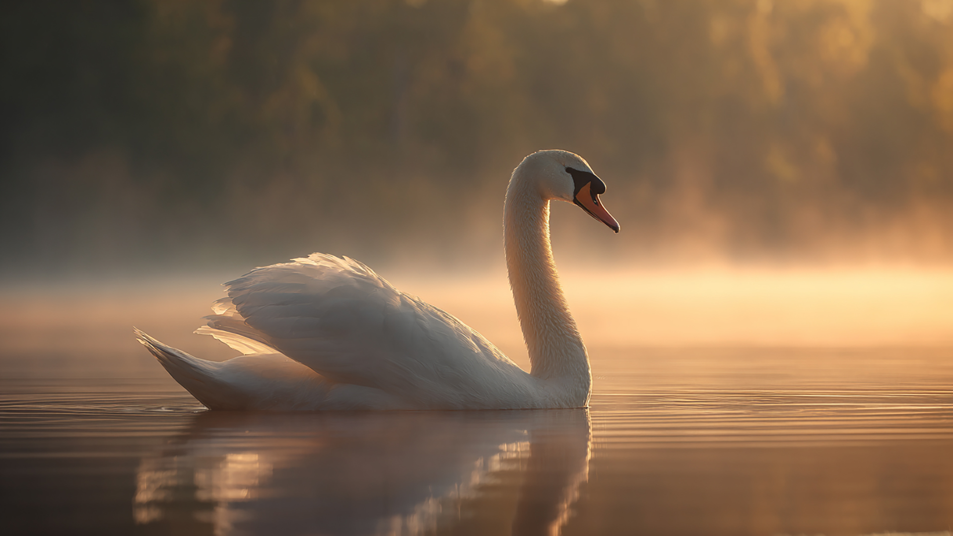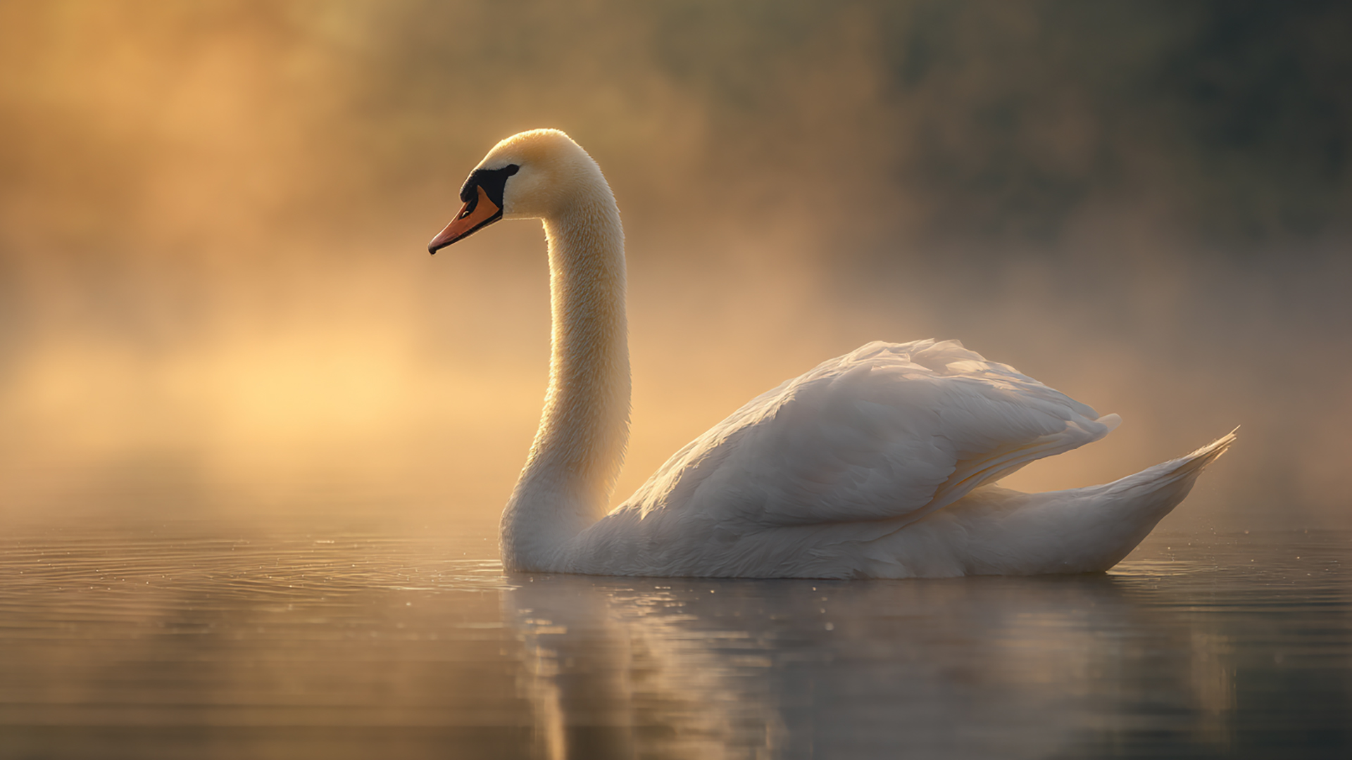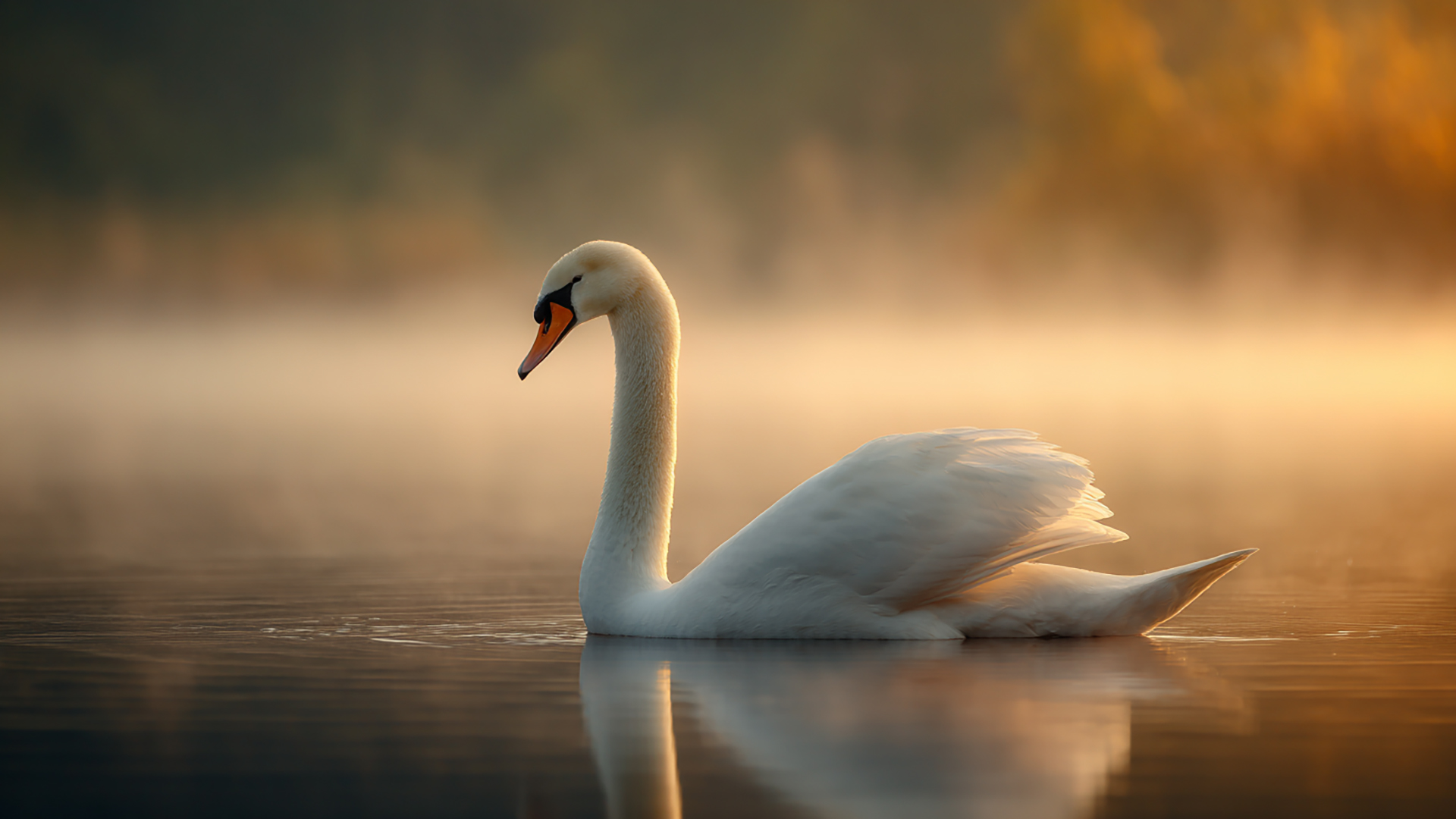 湖畔の白鳥|写実風(4枚)