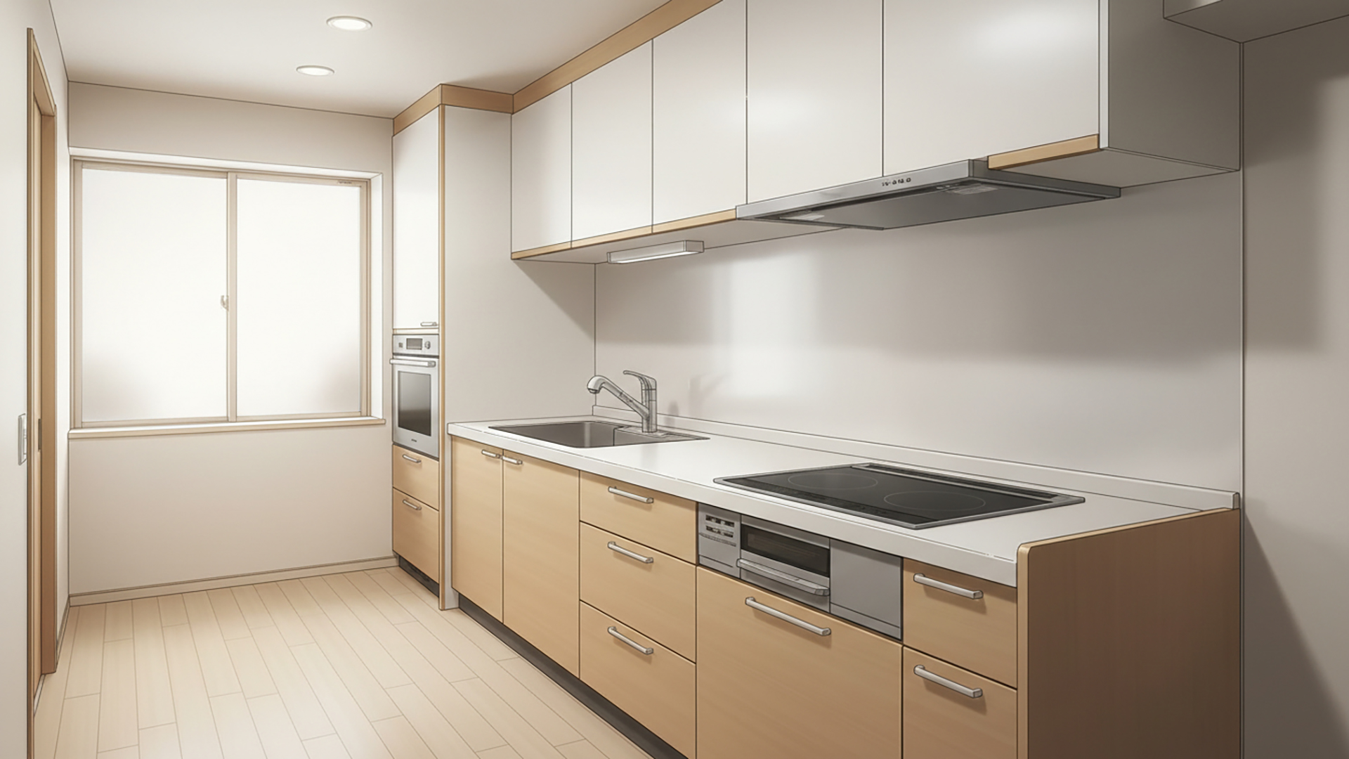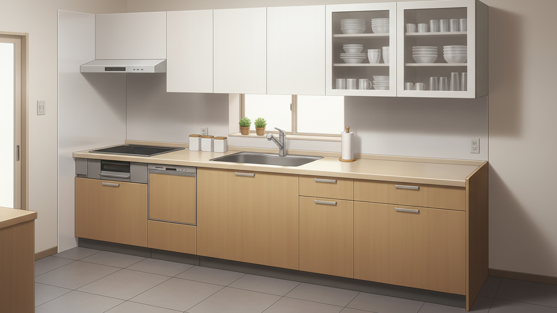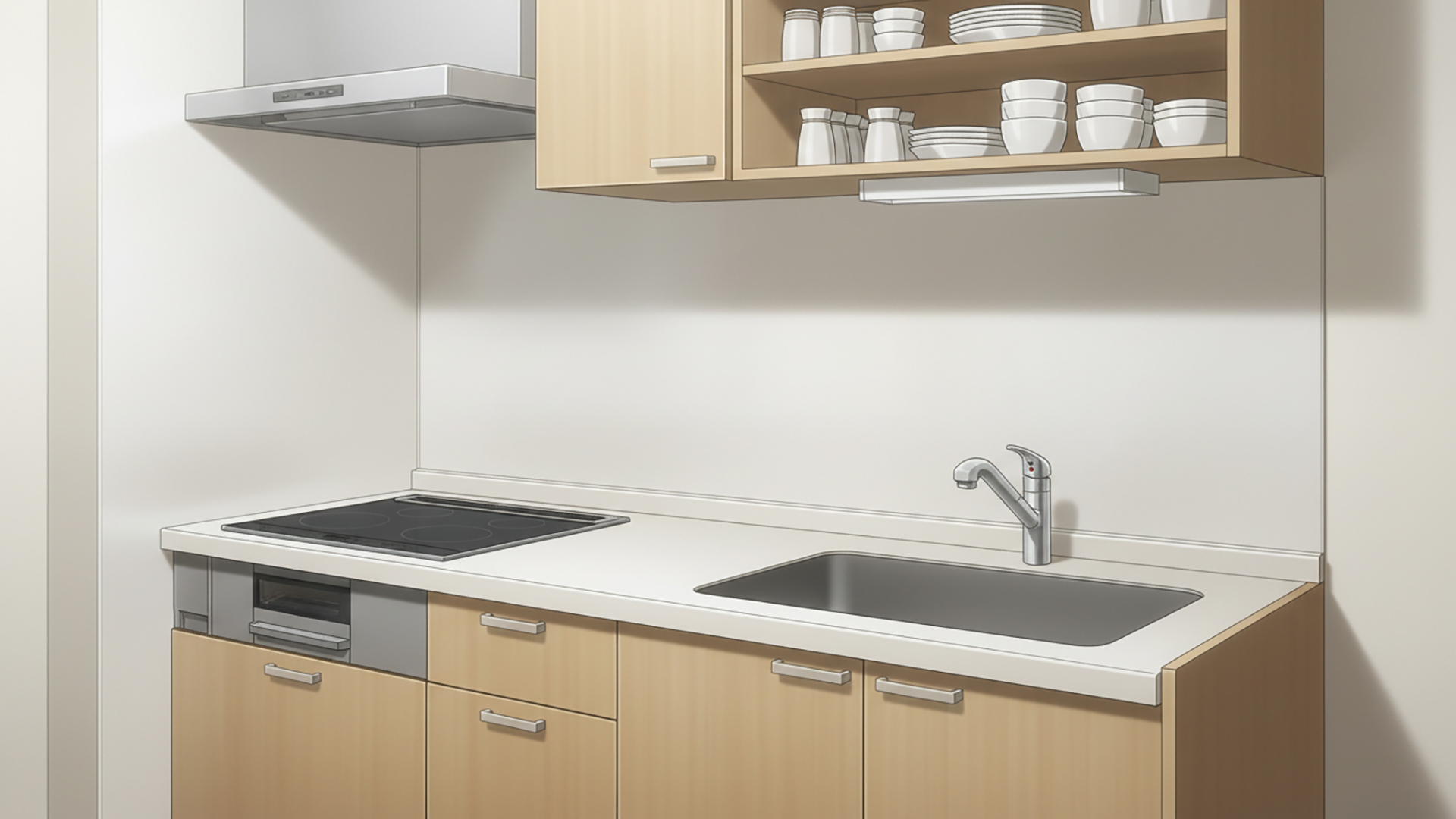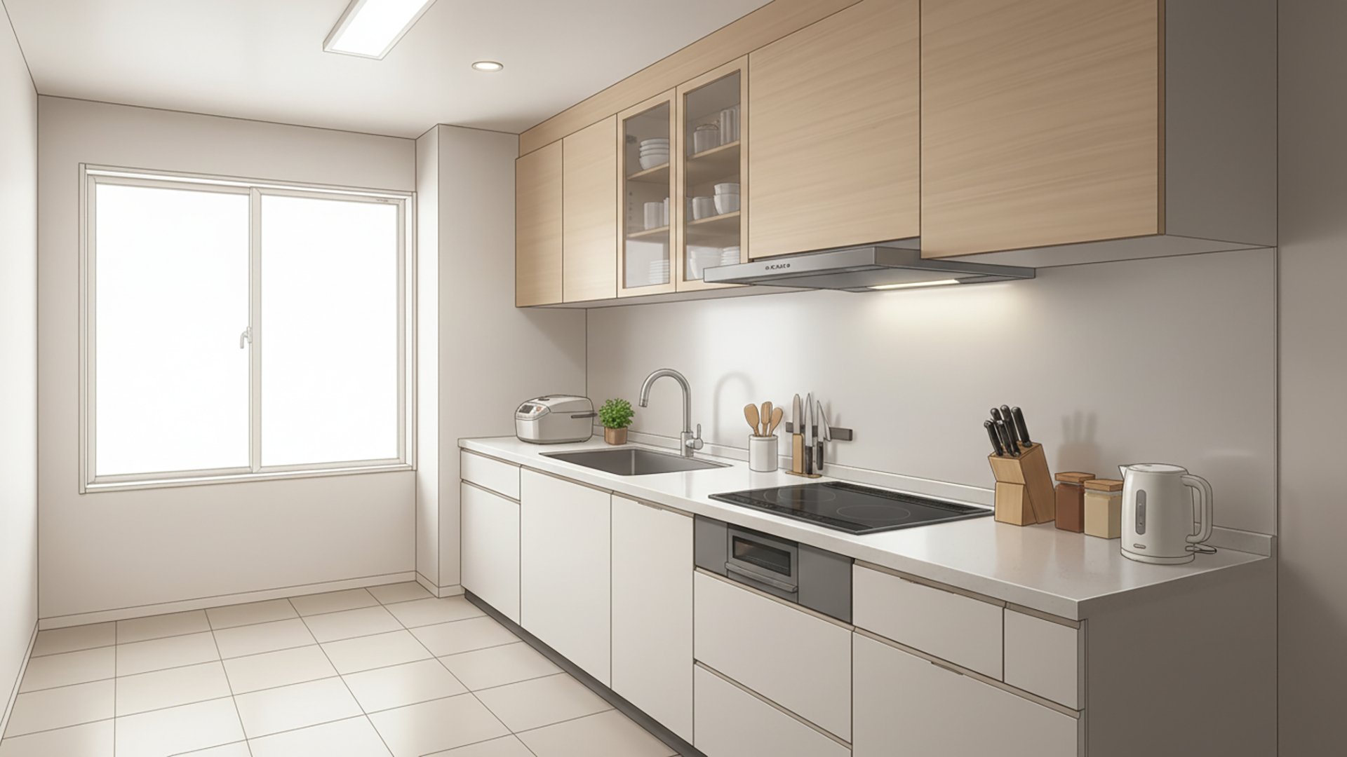 検索キーワード:システムキッチン, 台所, 住宅, 室内, 生活感, 料理, Kitchen, Modern, Interior, Counter, Cooking, Residential