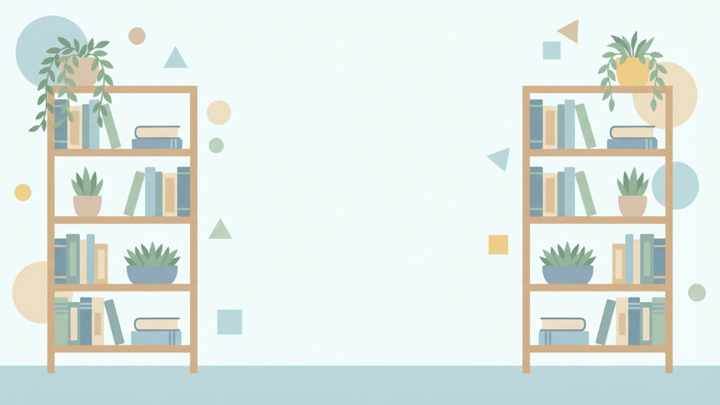 VTuber読書配信用・左側余白の広い図書館フラット背景(3枚)