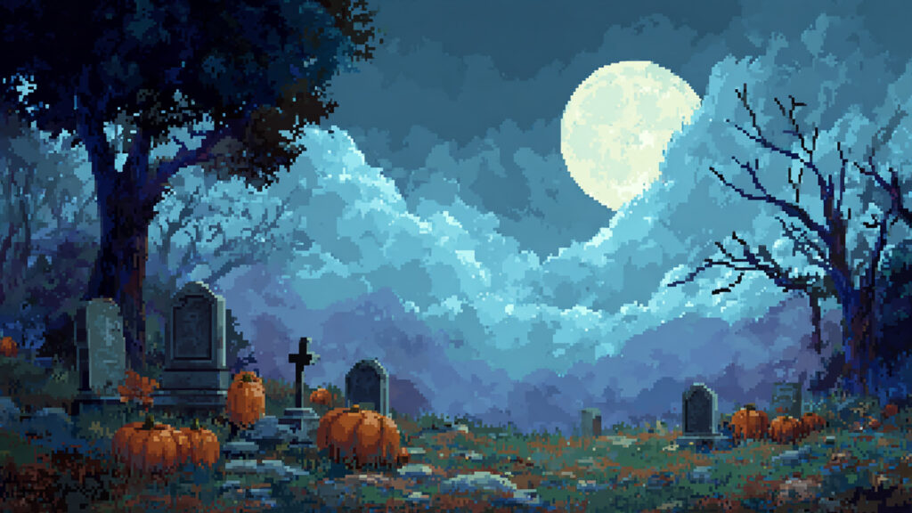 ドット絵風|ハロウィン墓地背景素材(3枚)