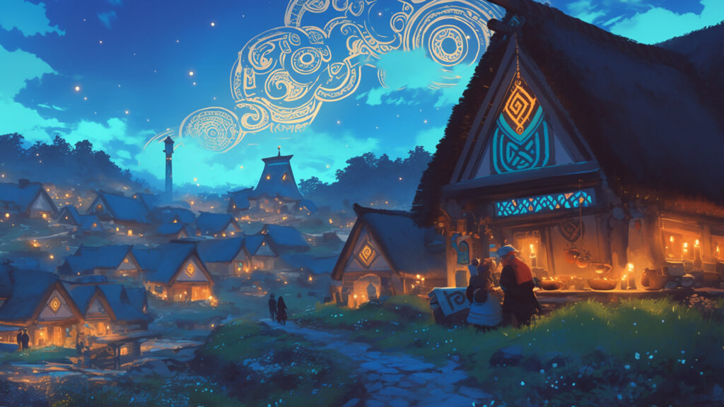 ケルト風|夜のケルト村と灯火(3枚)