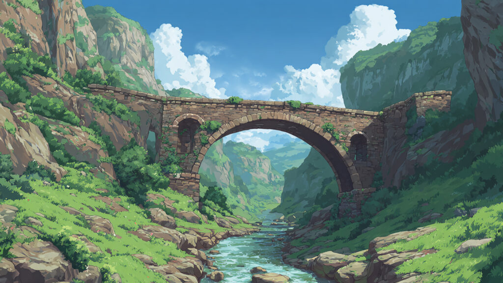 渓谷の大橋と青空|ファンタジー・冒険・旅の途中(3枚)