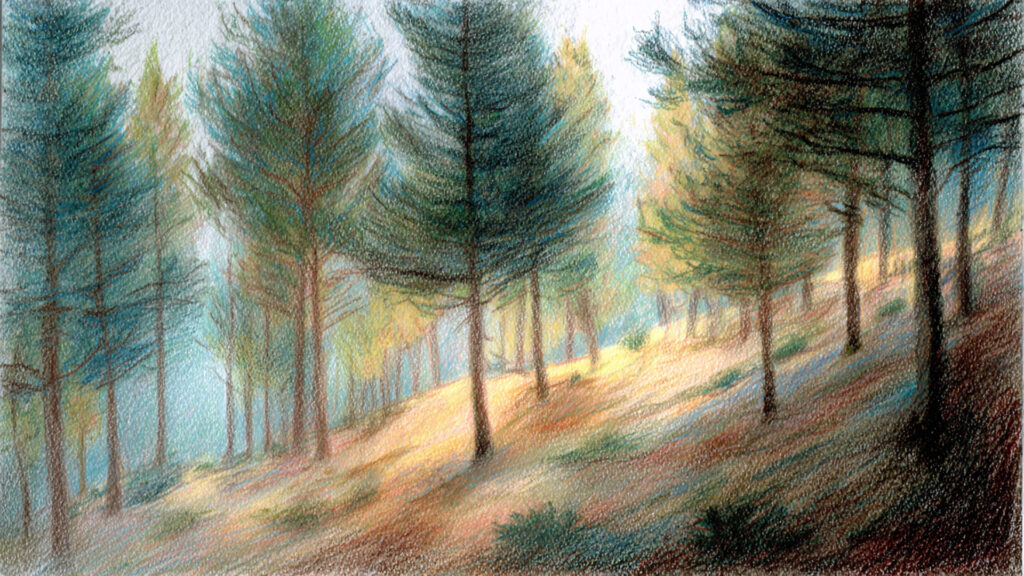 色鉛筆風-森の背景素材|手描き風自然風景テクスチャ(3枚)