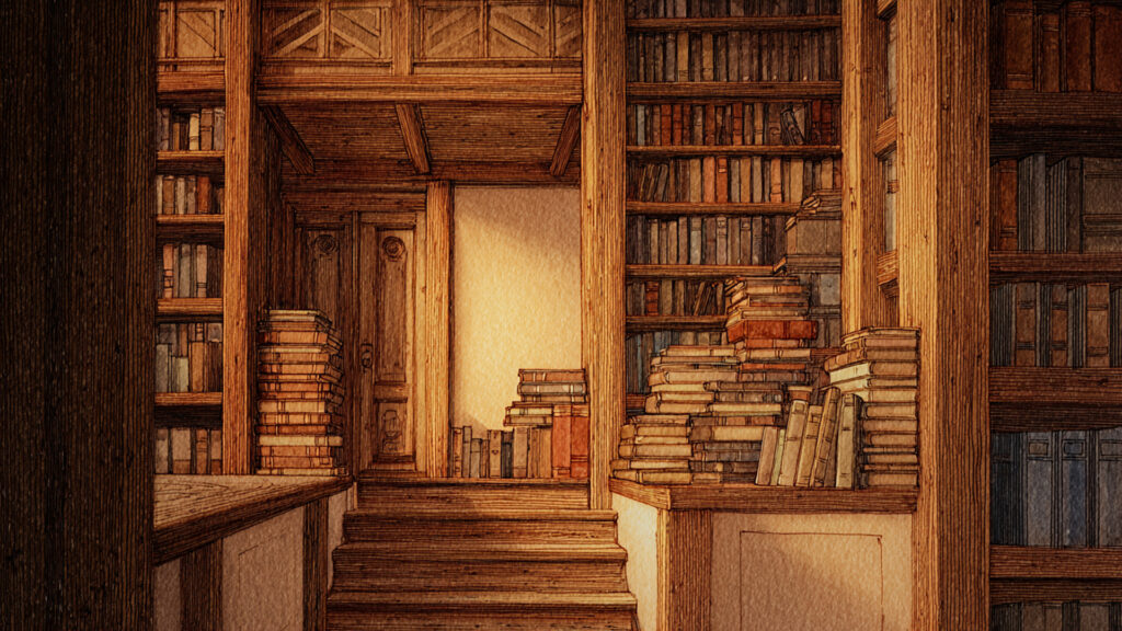 色鉛筆風-図書館|手描き風アンティーク風景(3枚)