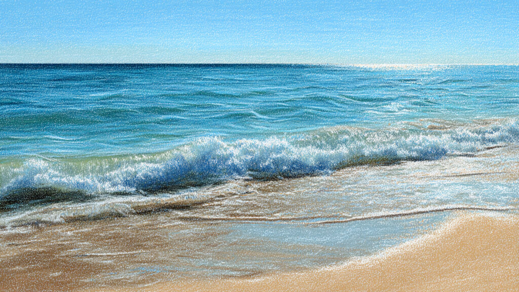 色鉛筆風-海辺の背景素材|柔らかな手描き風ビーチ風景(3枚)