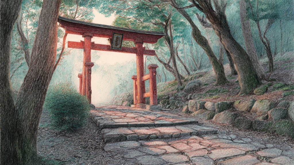 色鉛筆風-神社の鳥居|和風の手描き風風景(3枚)