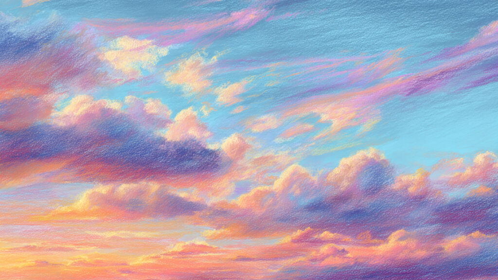 色鉛筆風-空と雲の背景素材|夕焼け手描き風テクスチャ(3枚)