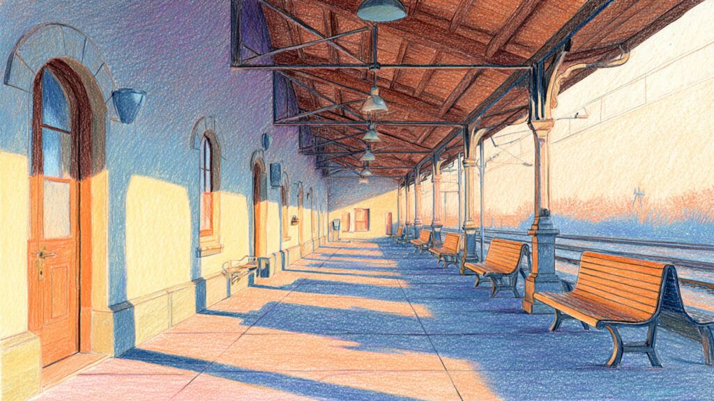 色鉛筆風-駅ホーム背景素材(3枚)
