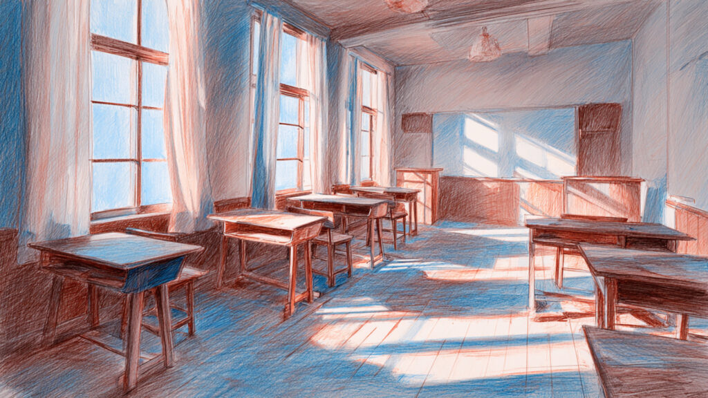 色鉛筆風-教室の背景素材(3枚)