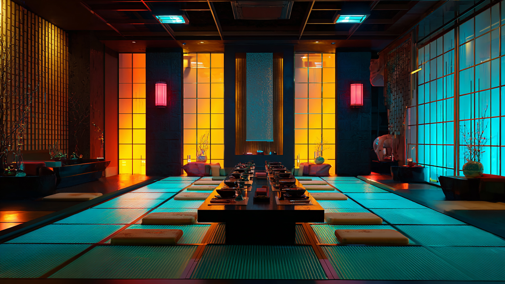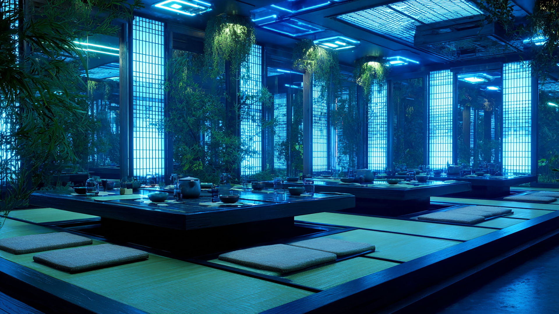 検索キーワード:未来, 茶室, 和風, 静寂, 光, 融合, future, teahouse, japanese style, silence, light, harmony