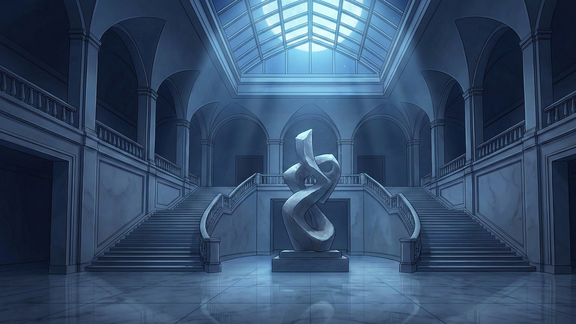 検索キーワード:夜の美術館, 夜の博物館, エントランスホール, ナイトミュージアム, 幻想的, 建築美, 静寂, ライトアップ, 芸術鑑賞, 大人の休日, night museum, art gallery, entrance hall, architectural photography, moody lighting, museum architecture, aesthetic, midnight museum, sophisticated, interior design