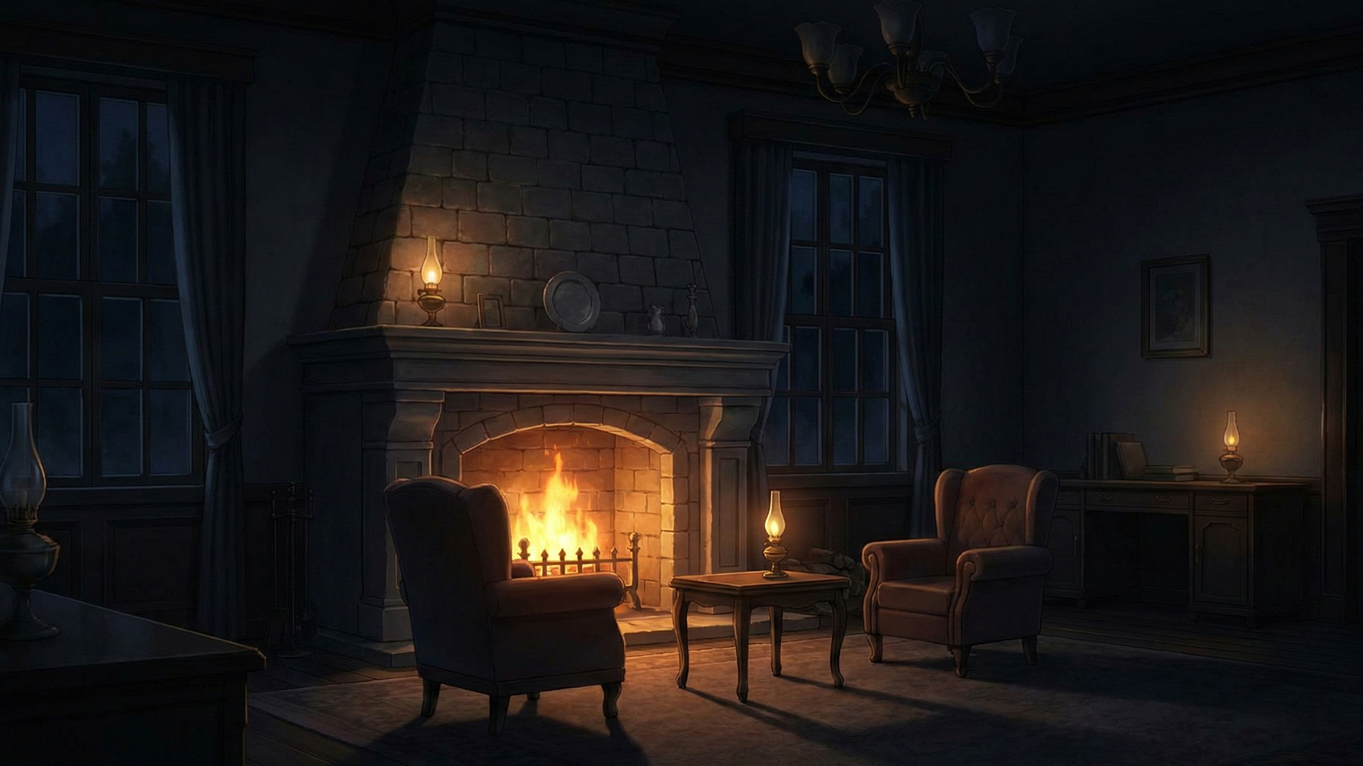 遺言書の読み上げが行われる厳粛な屋敷の応接間(3枚)
