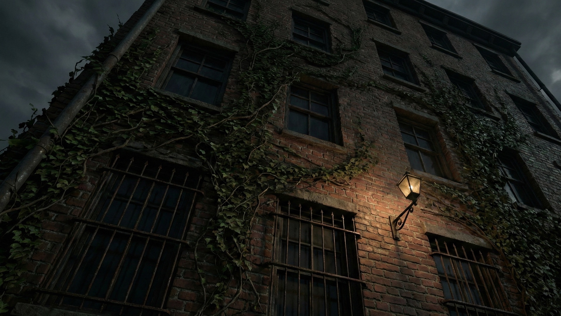 検索キーワード:夜の美術館, 博物館, レンガ造り, 建築美, ノスタルジー, レトロ, 幻想的, ナイトミュージアム, 静寂, 歴史的建造物, 隠れ家, night museum, brick architecture, historical building, red brick, vintage aesthetic, moody lighting, nostalgic, architectural photography, mystery, museum at night