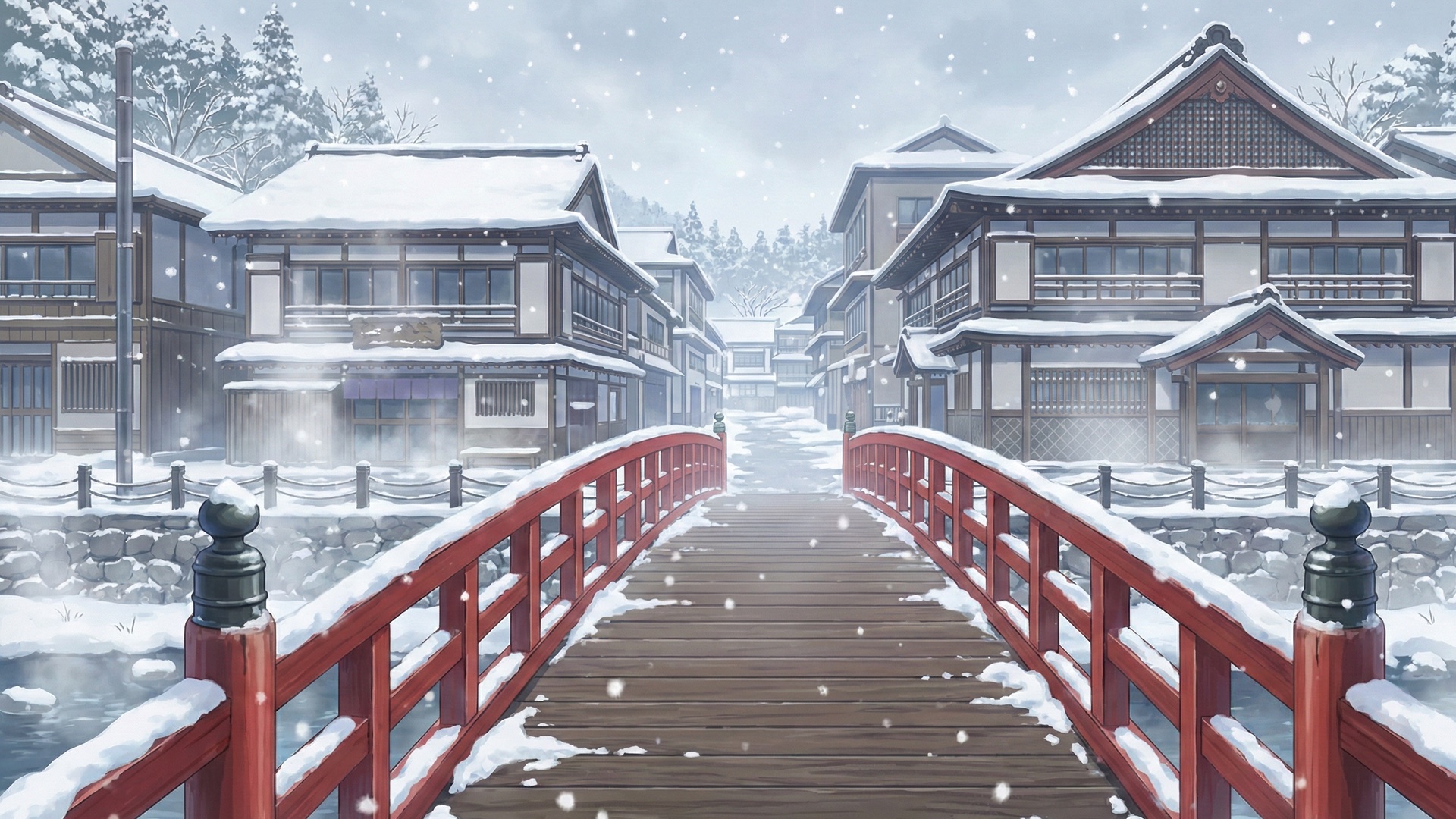 温泉旅館の赤い太鼓橋(3枚)