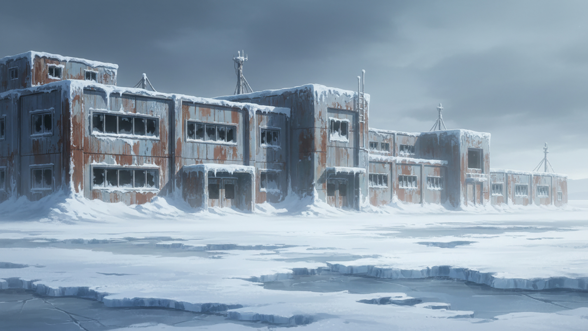検索キーワード:雪, 無人施設, 廃墟, 基地, 凍土, 吹雪, Snow, Abandoned, Facility, Arctic, Base, Blizzard