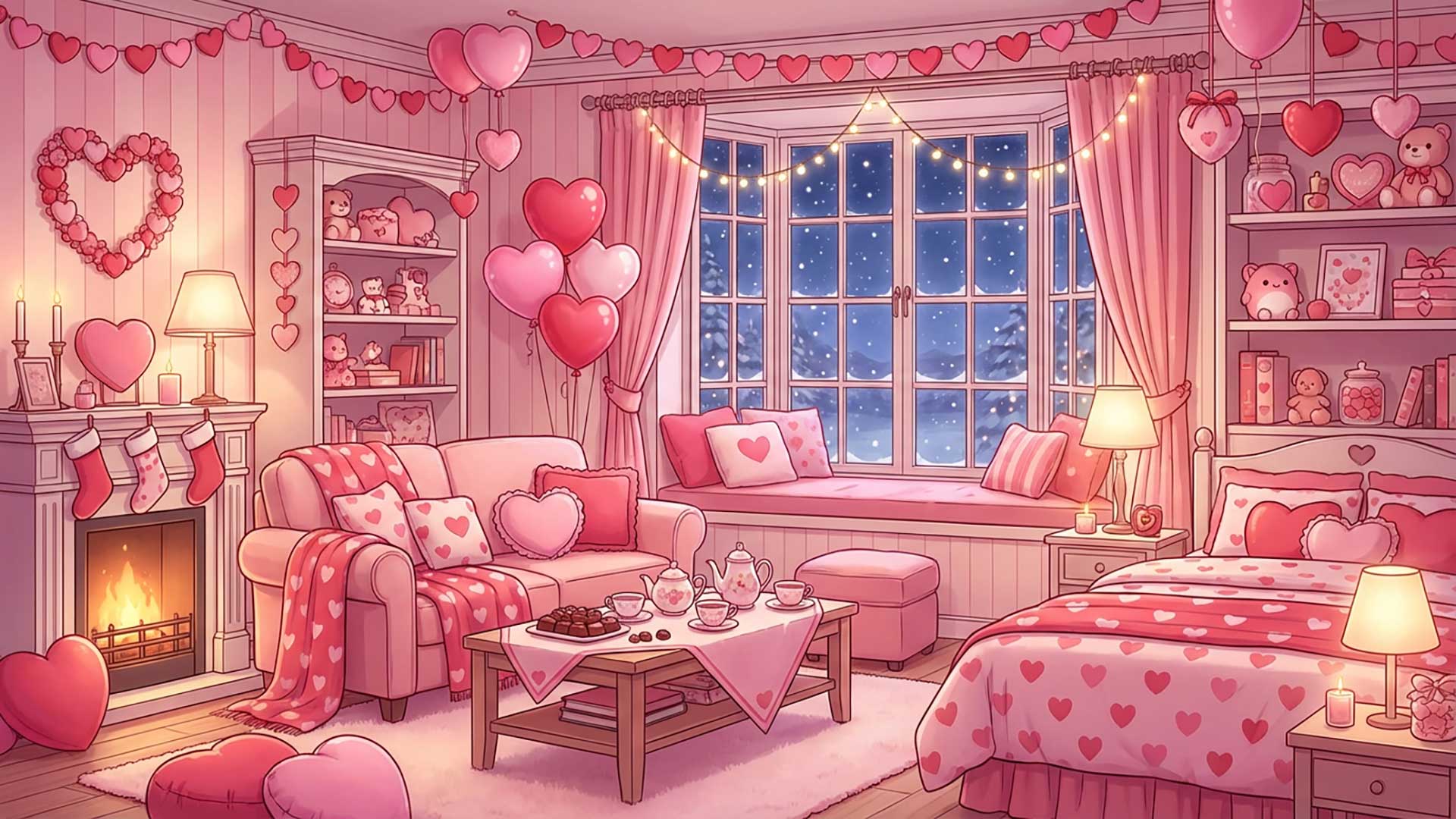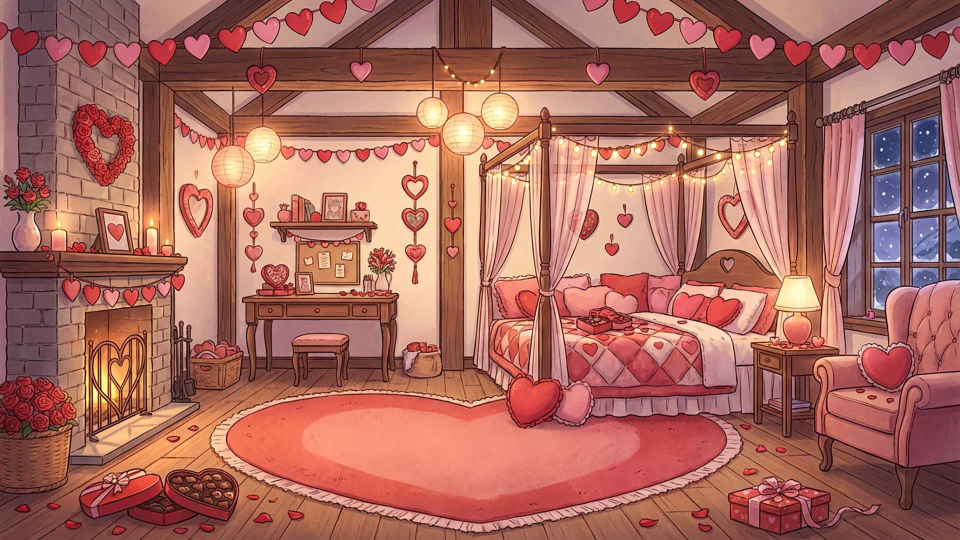 バレンタイン装飾の部屋(4枚)