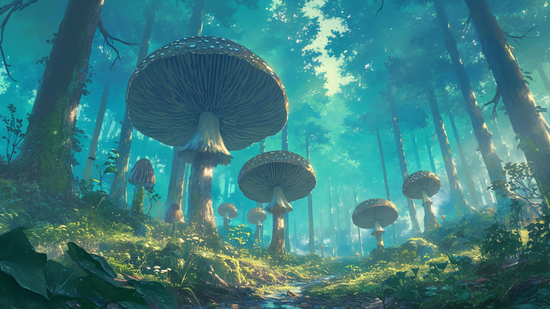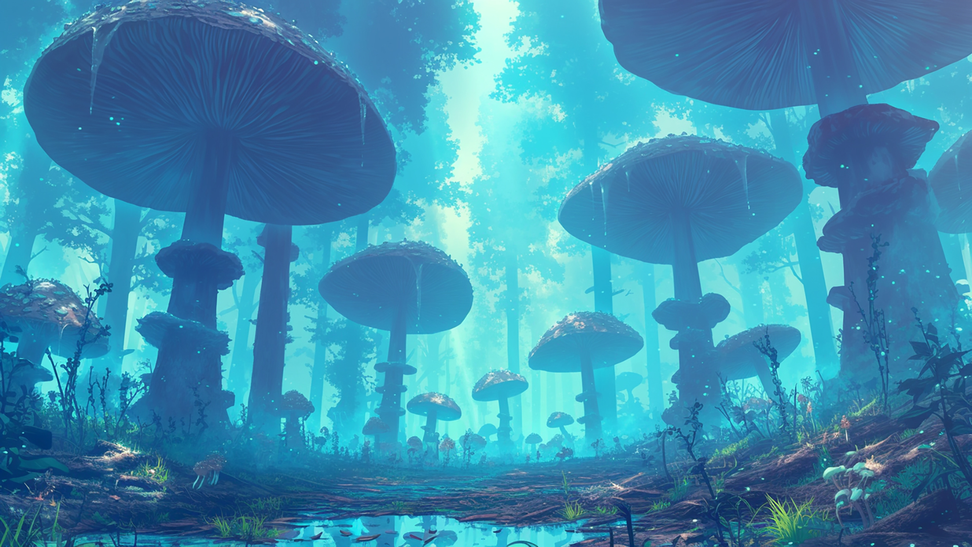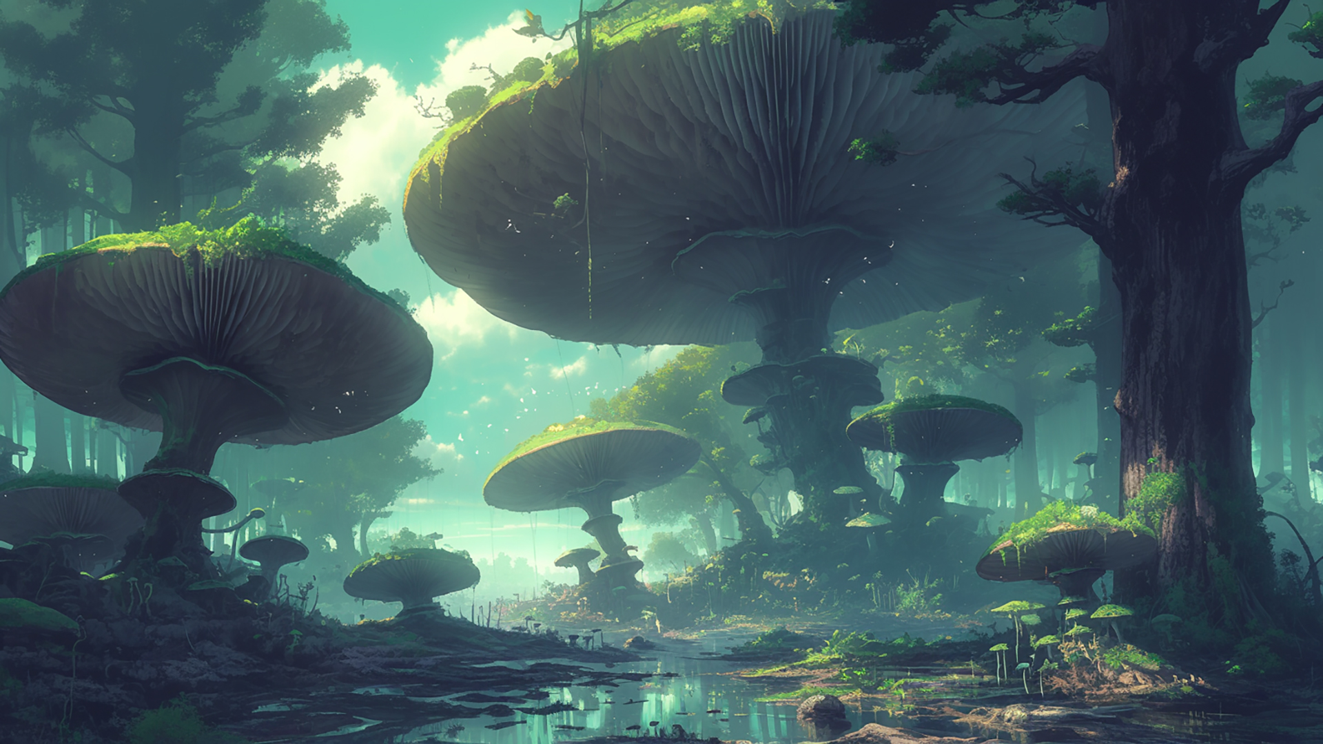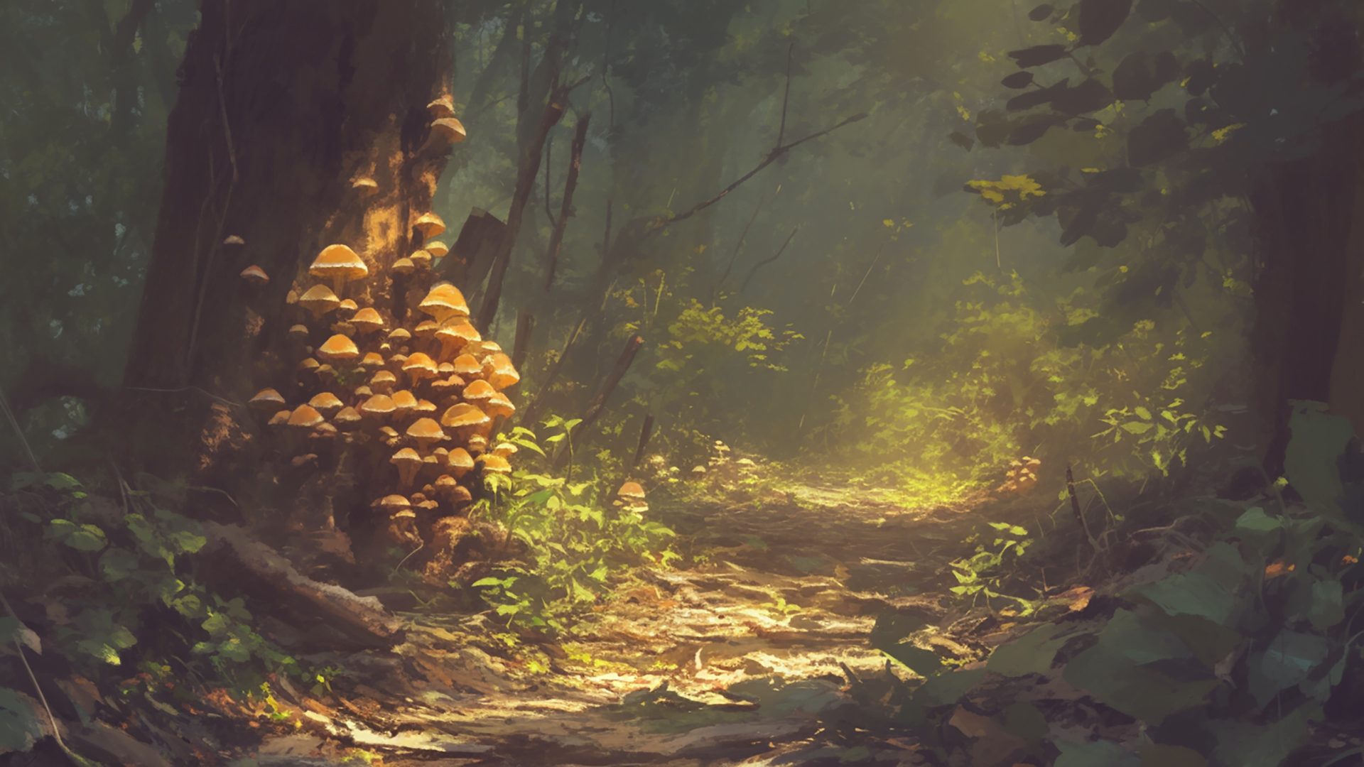湿ったキノコの森