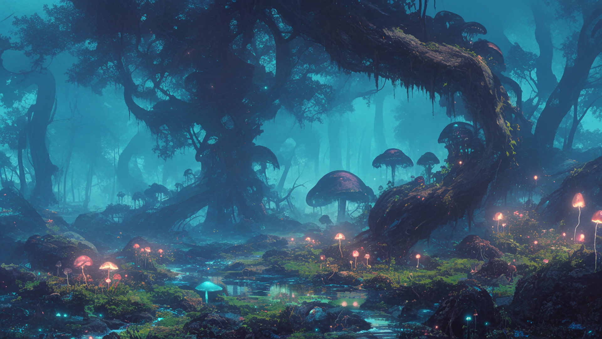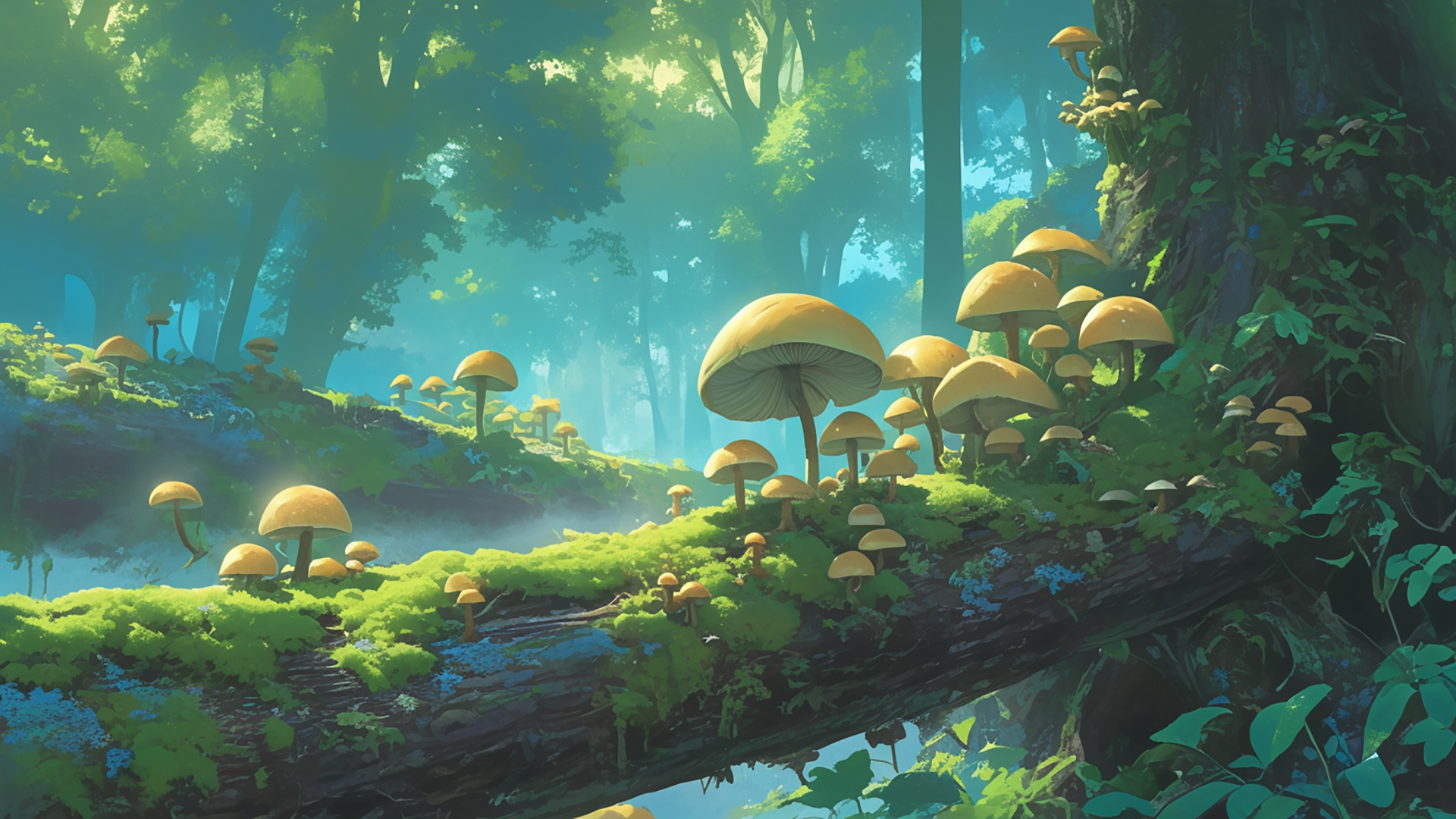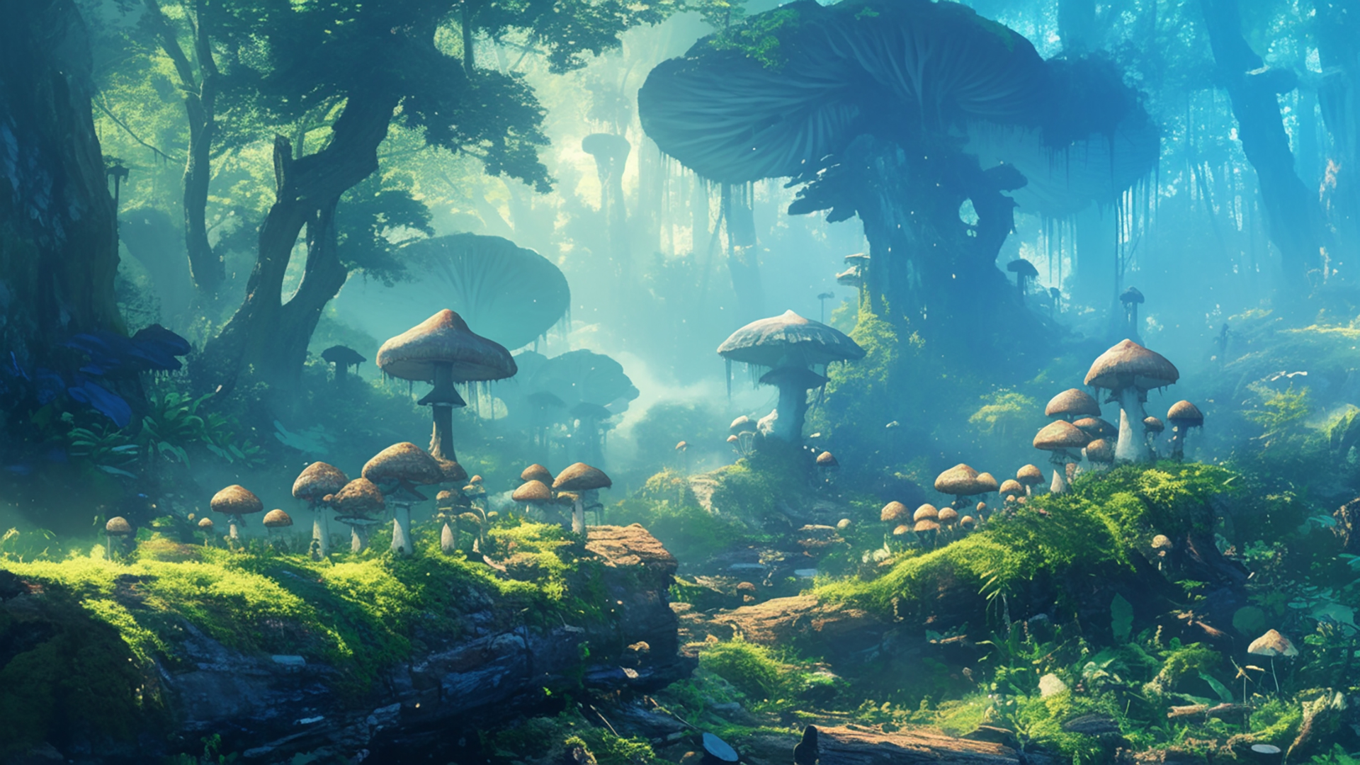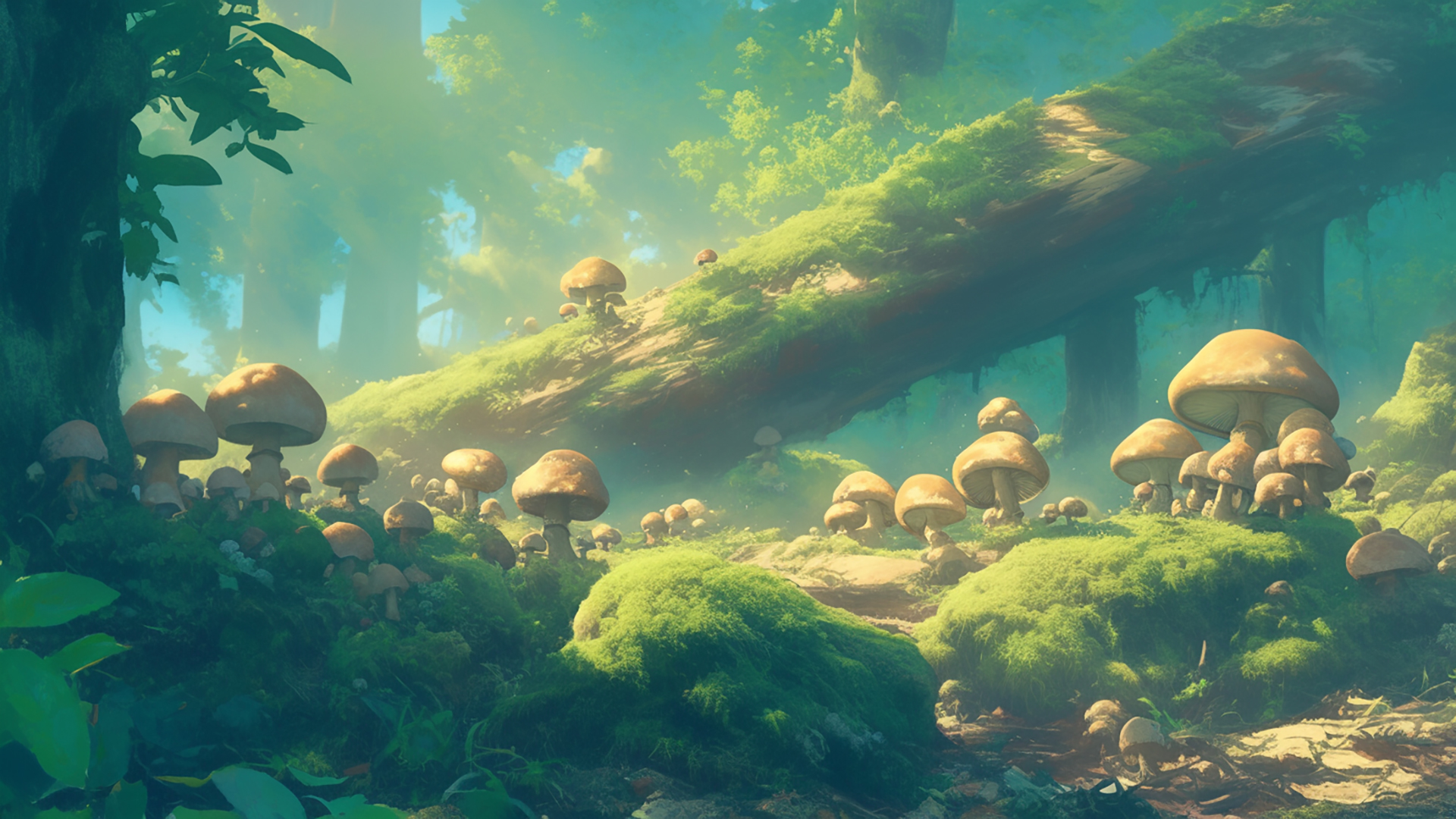 湿ったキノコの森
