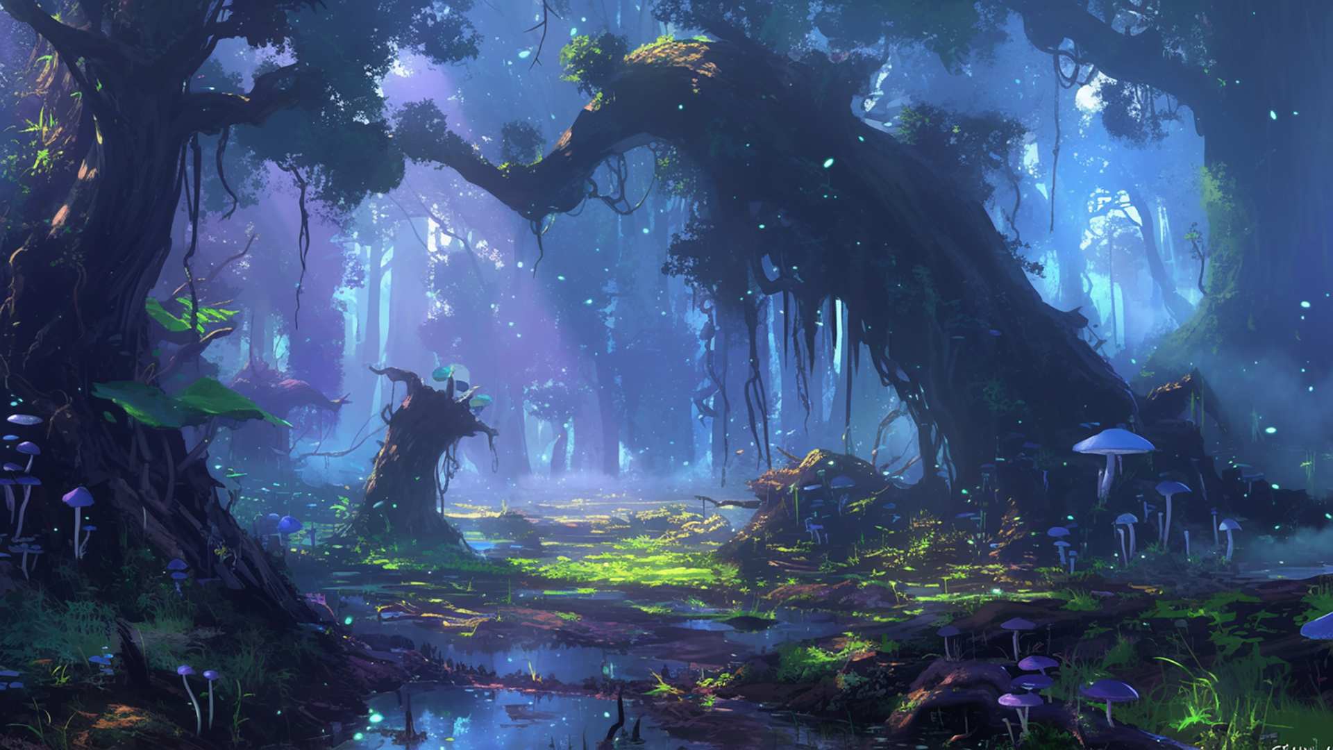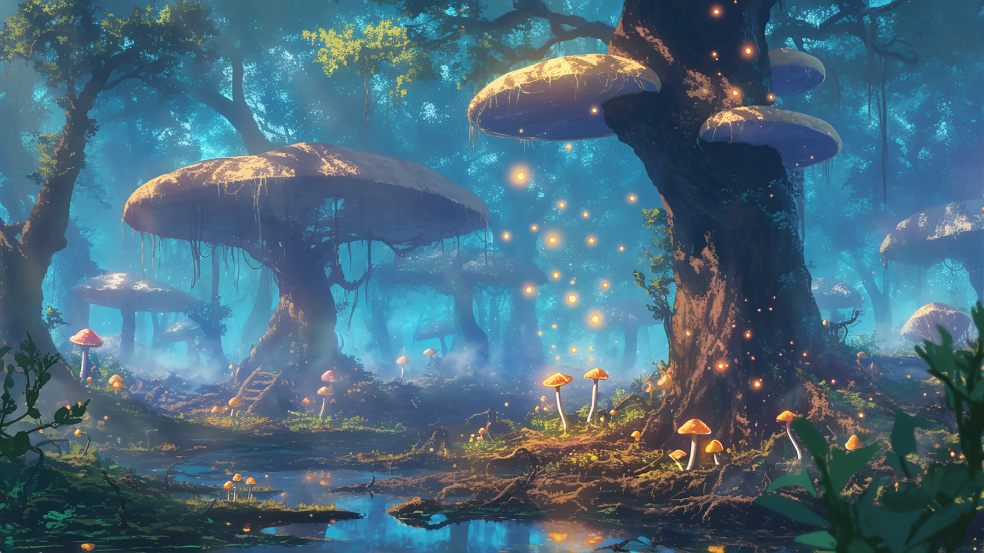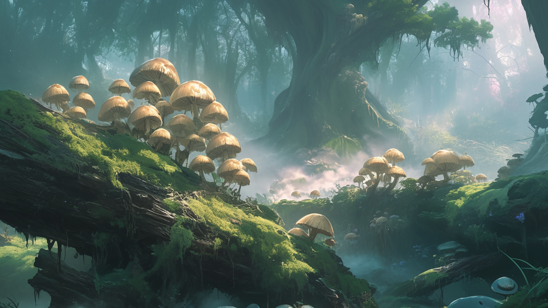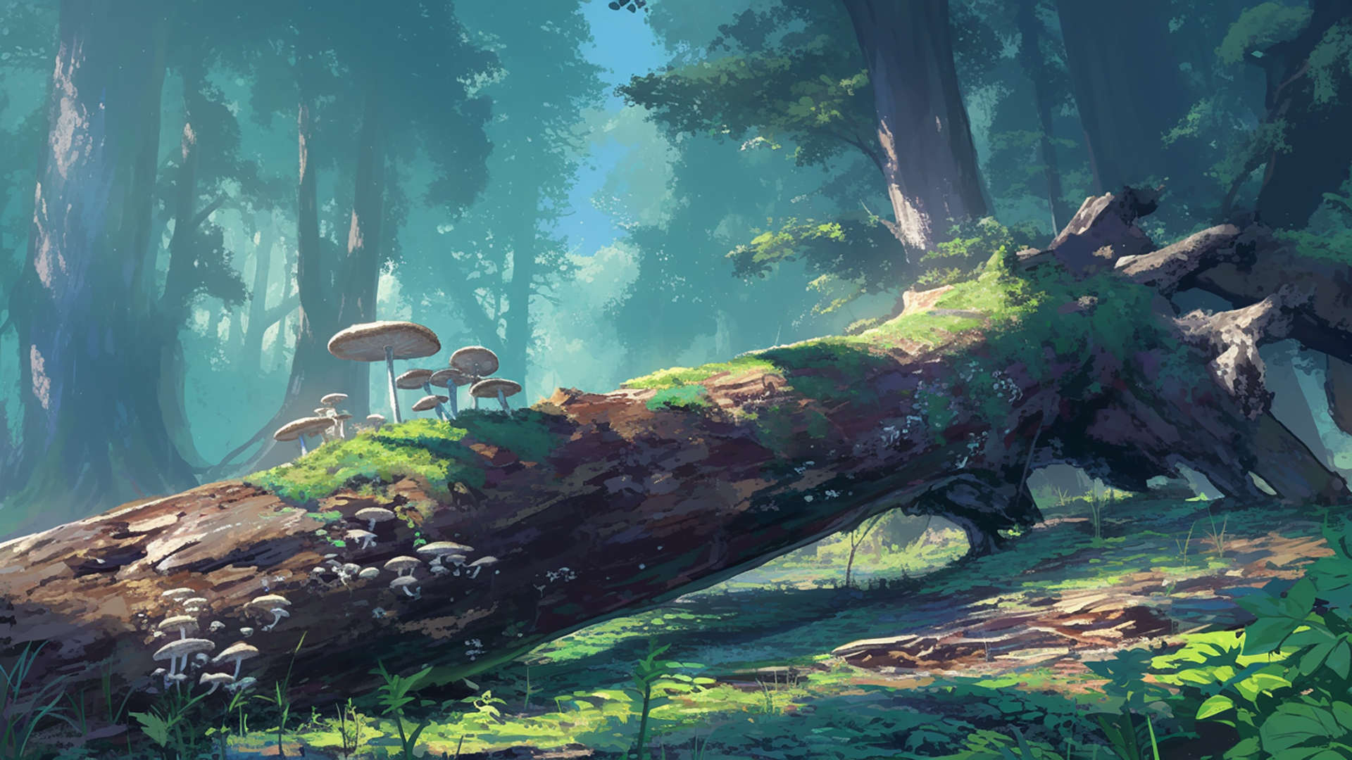 湿ったキノコの森