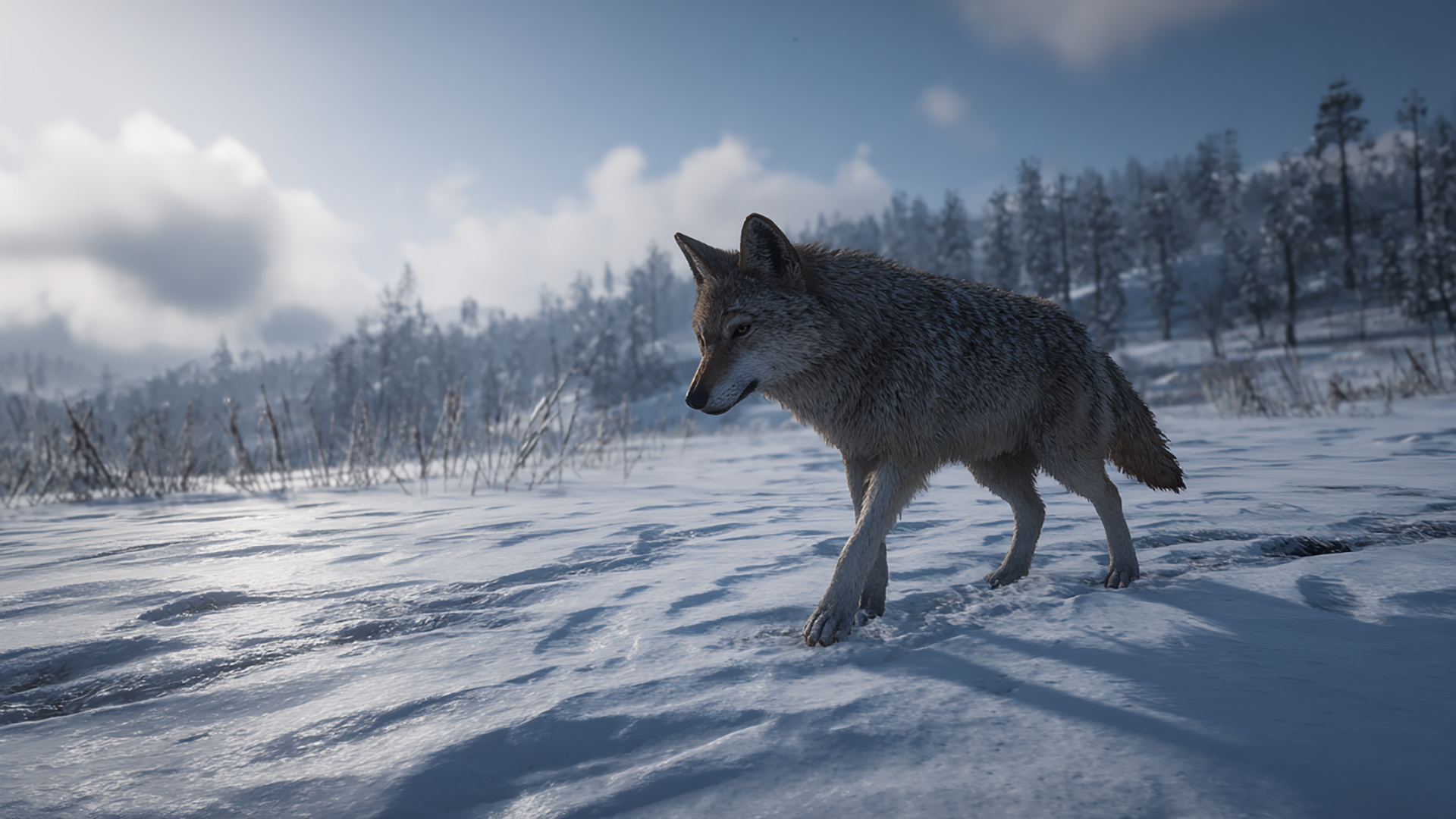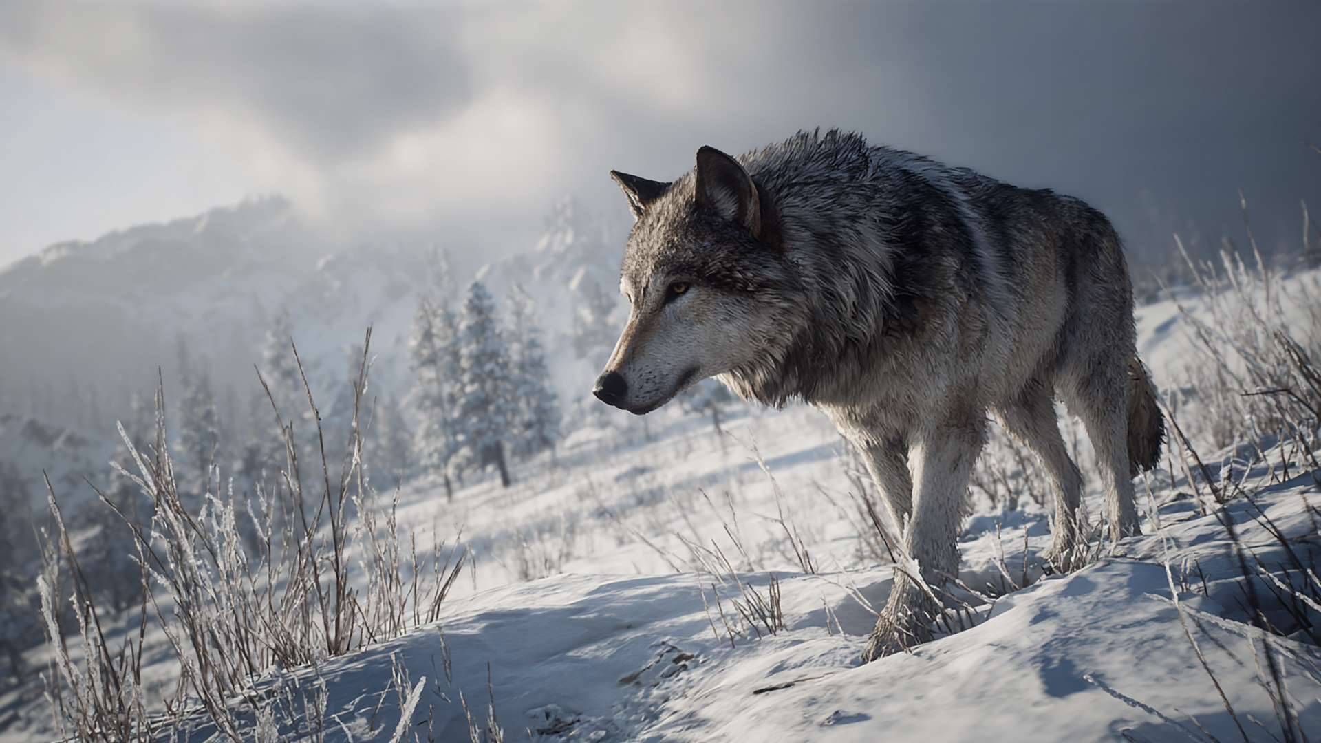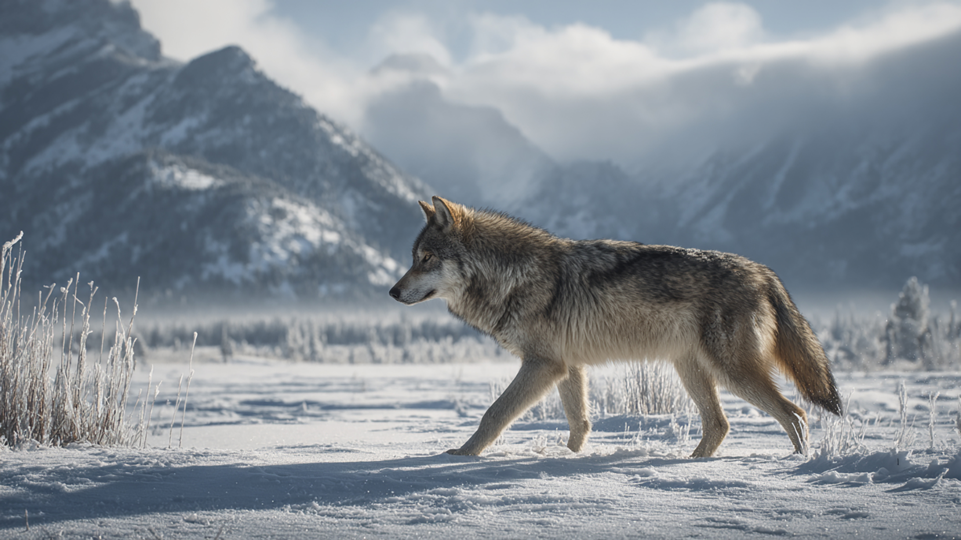 検索キーワード:雪原, オオカミ, 写実風, 冬, 静寂, 野生, snowy field, wolf, realistic, winter, silence, wildlife